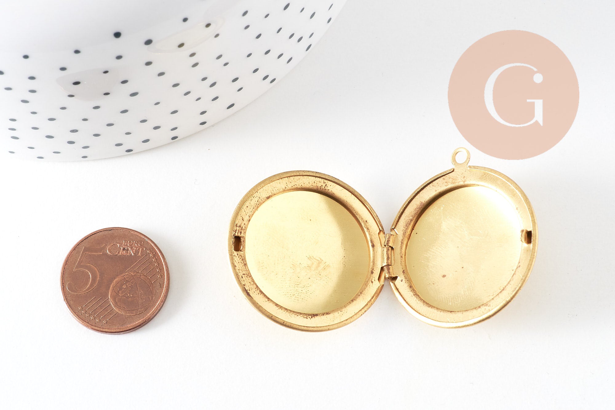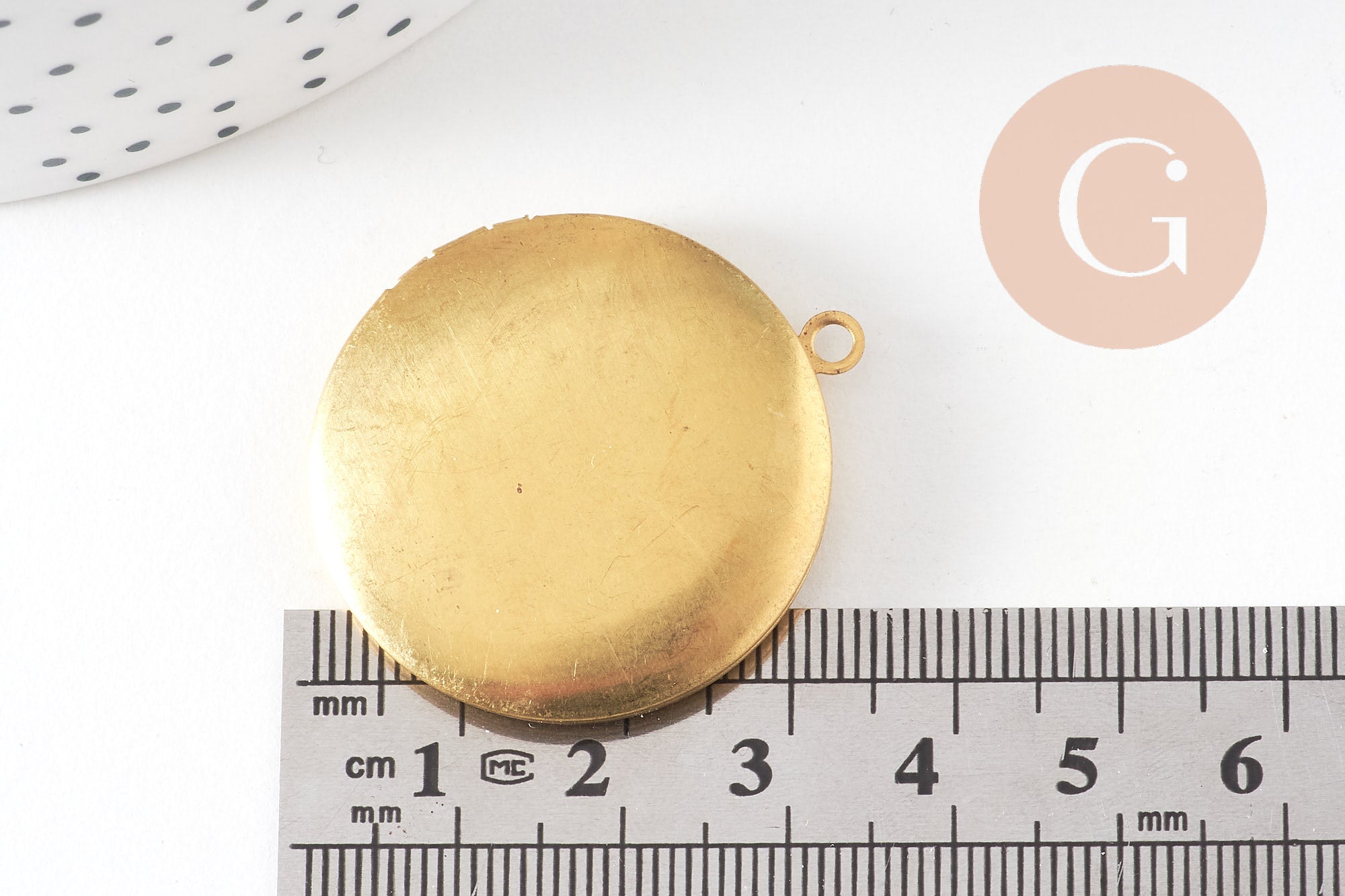 Pendentif locket rond medaillon laiton brut, médaillon Vintage, création collier, fournitures laiton brut,x 2-32mm-G1910