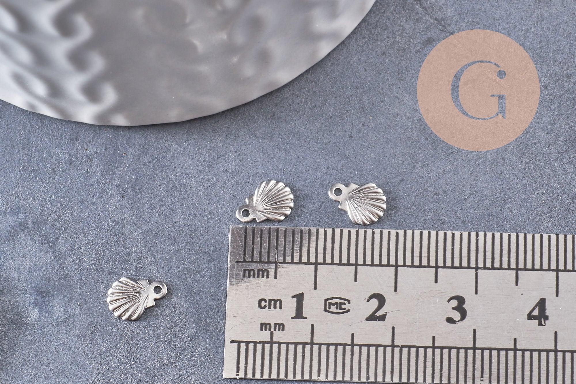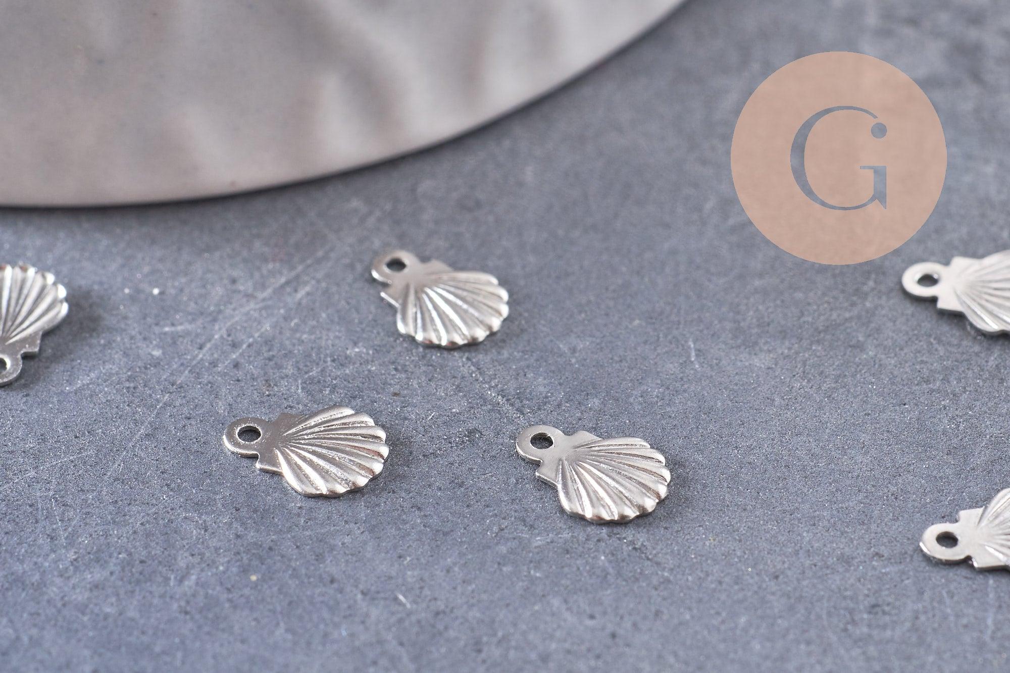 Encanto de concha de acero plateado, colgante de concha, colgante de joyería de acero inoxidable, sin níquel, lote de 10, 7,5 mm