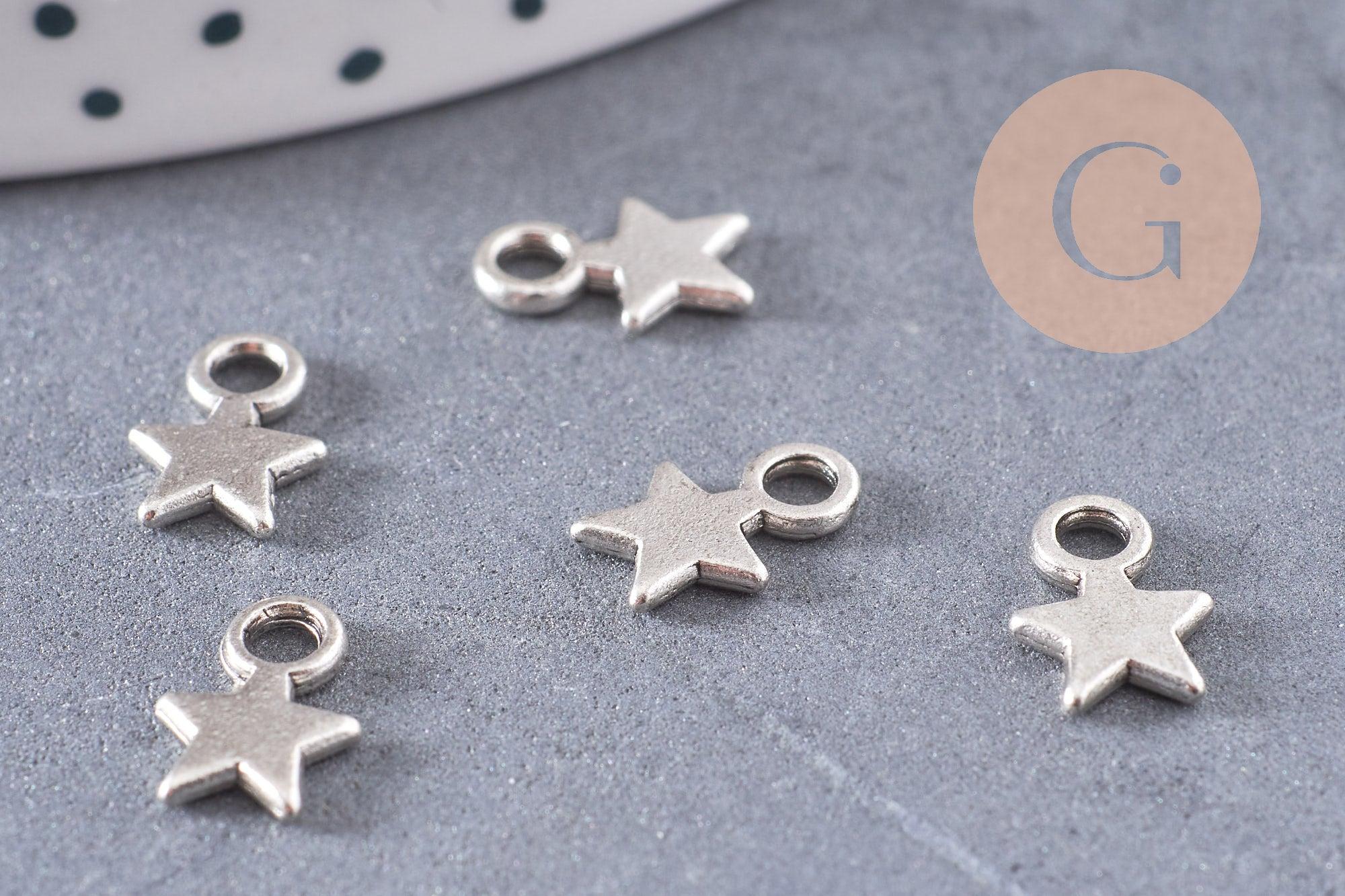 Charms de estrella de plata, suministros creativos, colgante de plata, colgante de estrella, estrella de plata, creación de joyas, 1 cm, juego de 50,