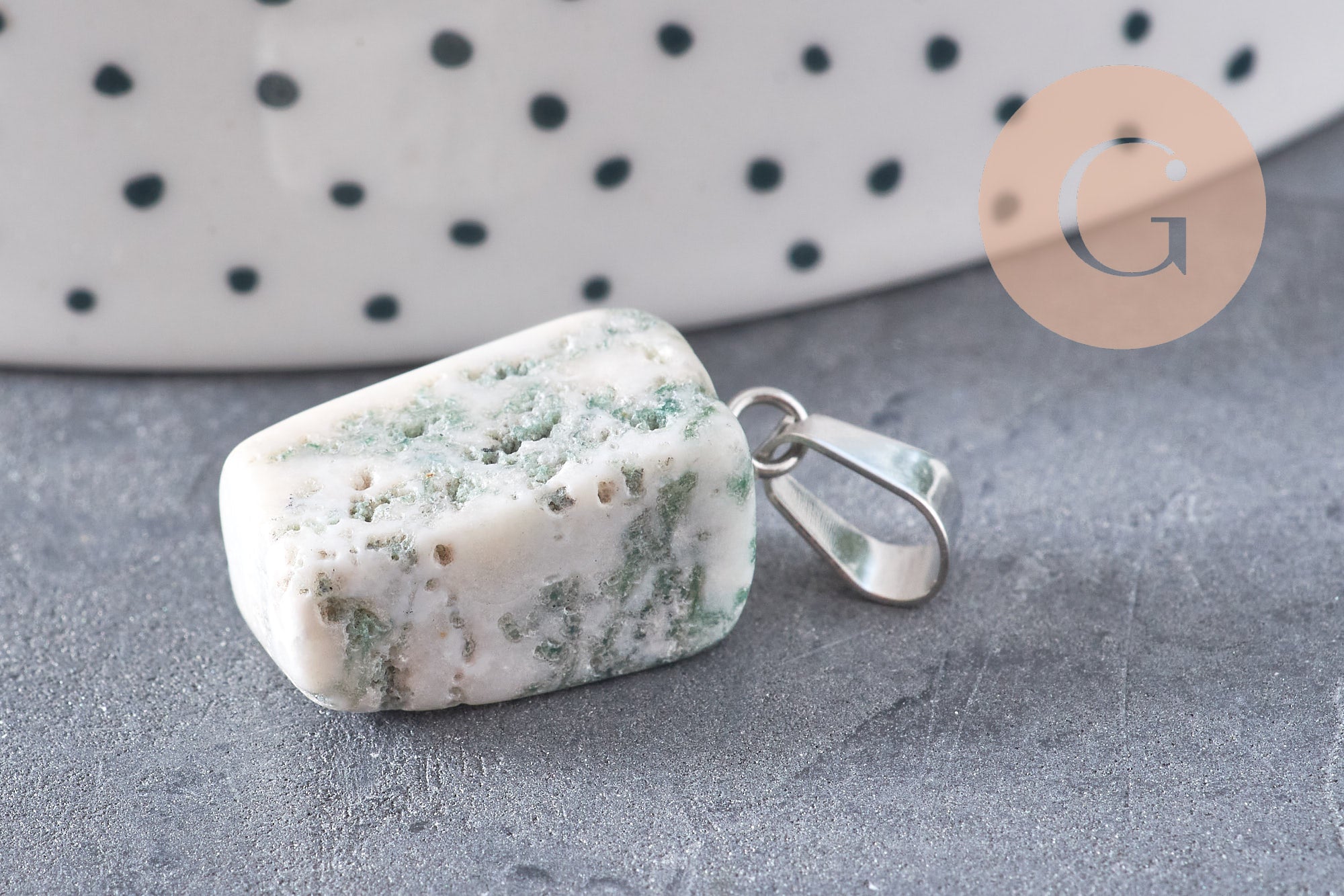 Descubra nuestro colgante de ágata india natural montado en un soporte de acero inoxidable platino de 35 mm. Esta pieza única es ideal para tus proyectos de joyería DIY, ofreciendo un toque natural y auténtico a tus creaciones.
