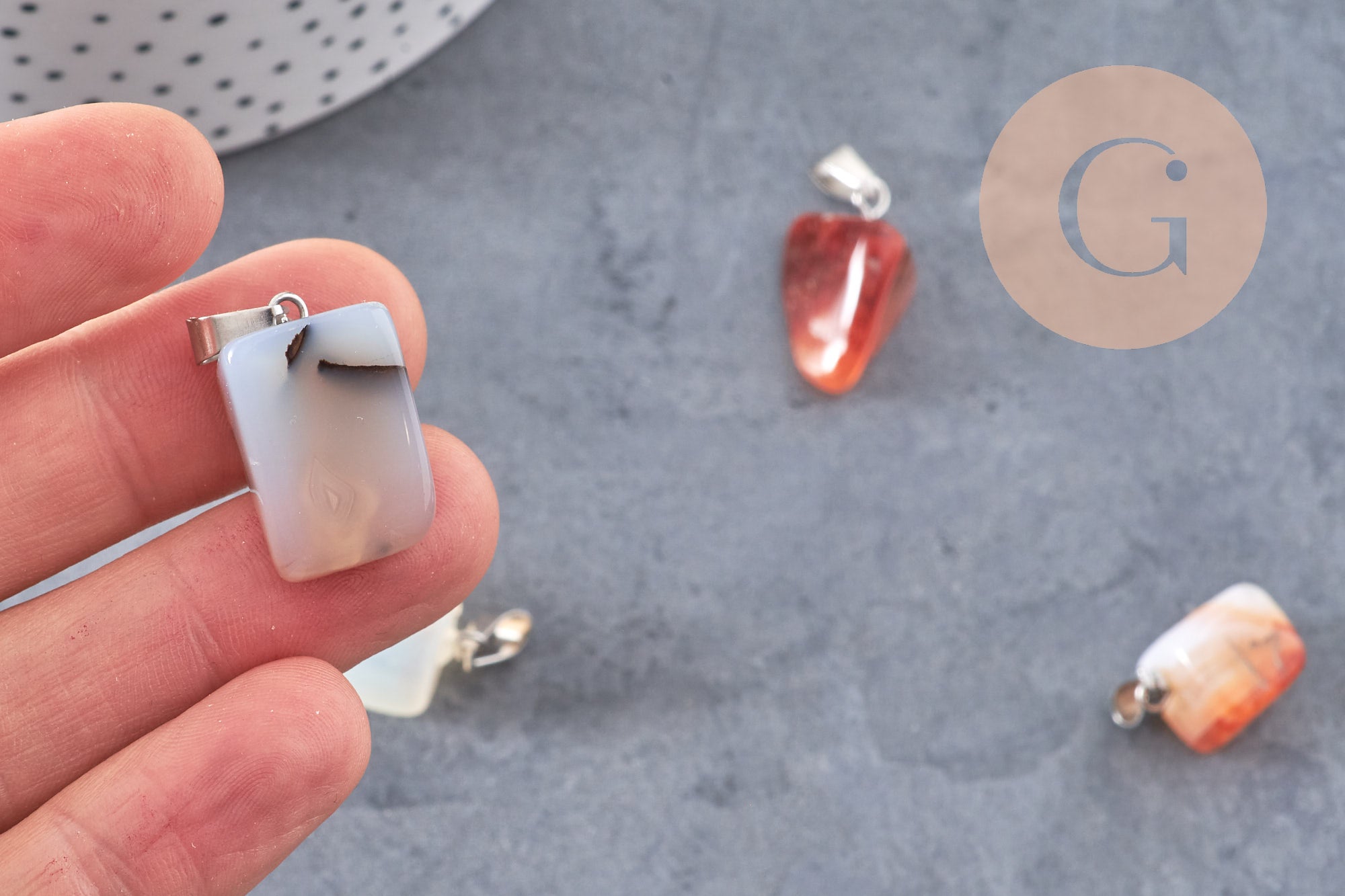Con este colgante de ágata natural y su soporte de acero inoxidable plateado , podrás crear multitud de bisutería DIY .