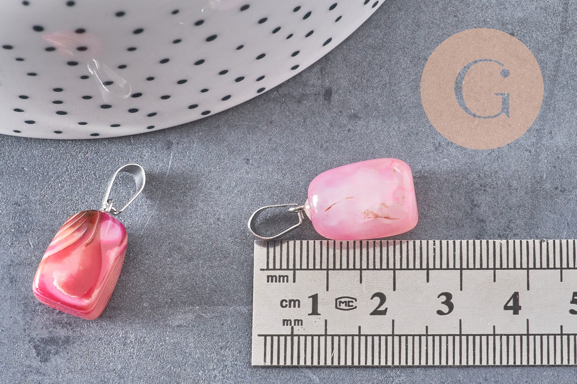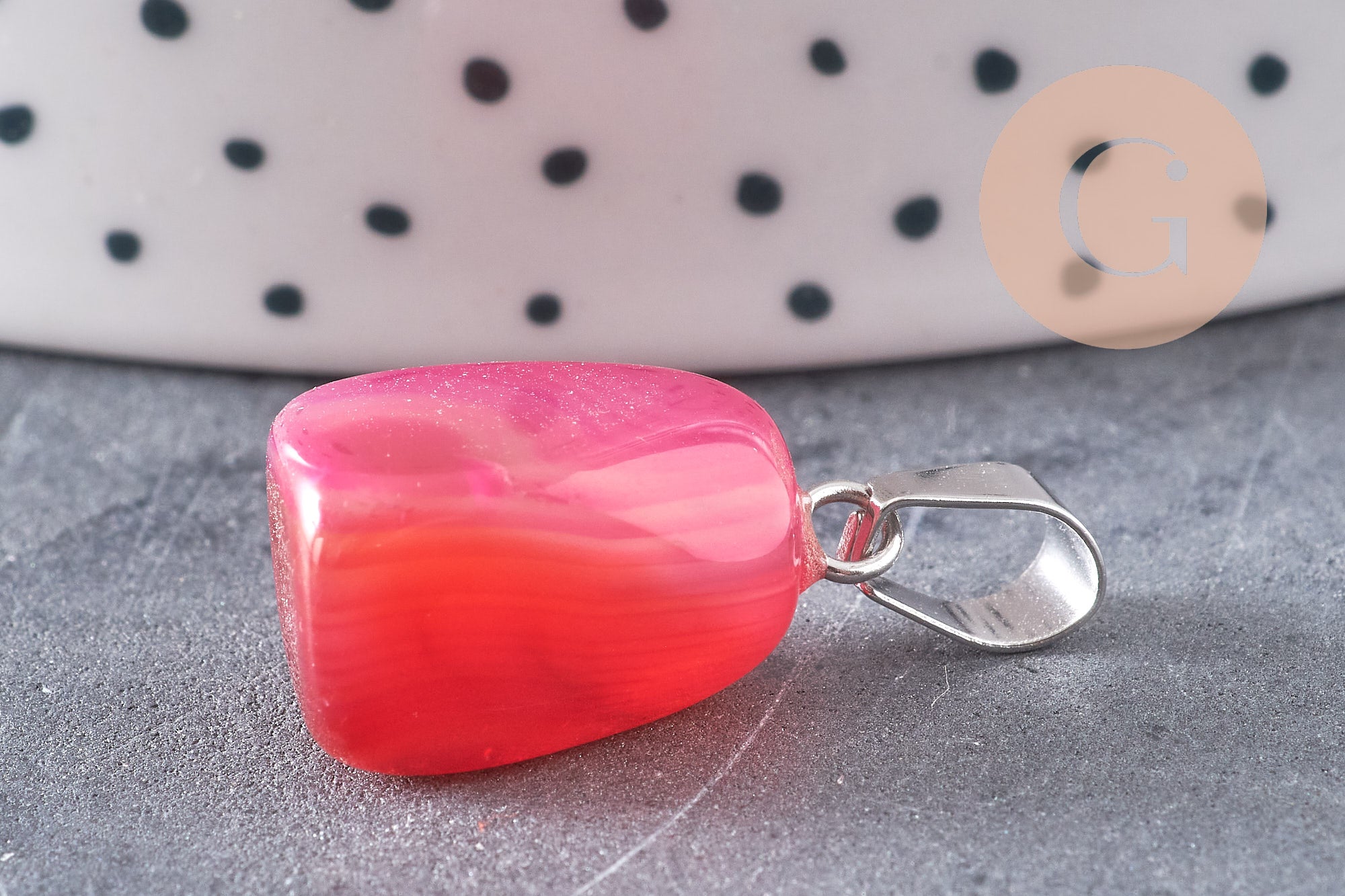 Pendentif agate rose rayée support acier argent, pendentif pierre, agate naturelle,création bijoux, pierre naturelle, 23mm, x1, G3901