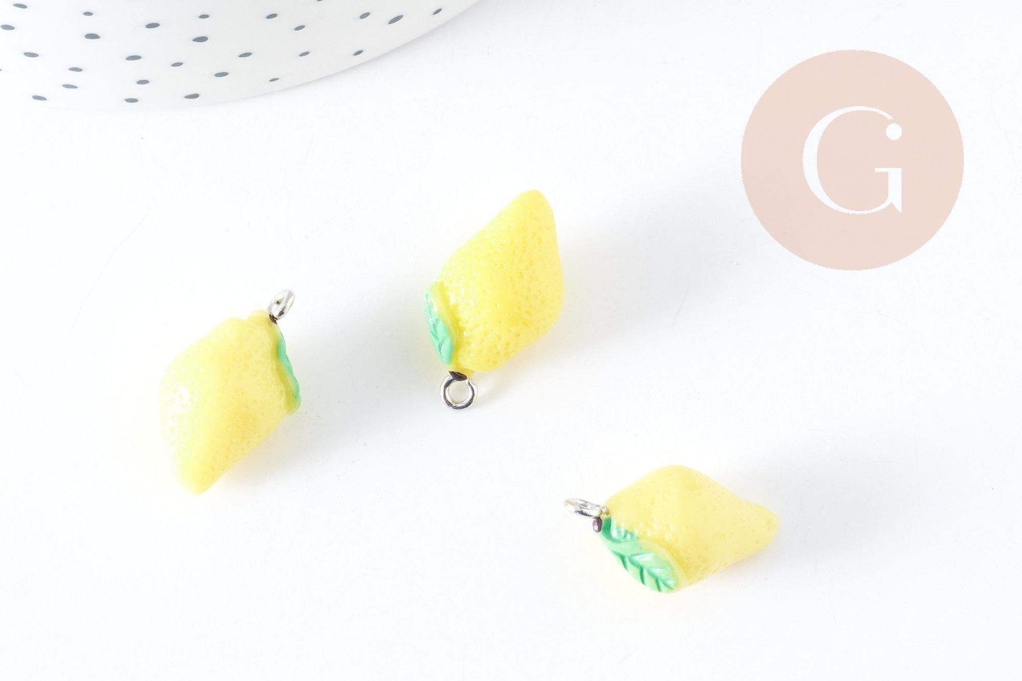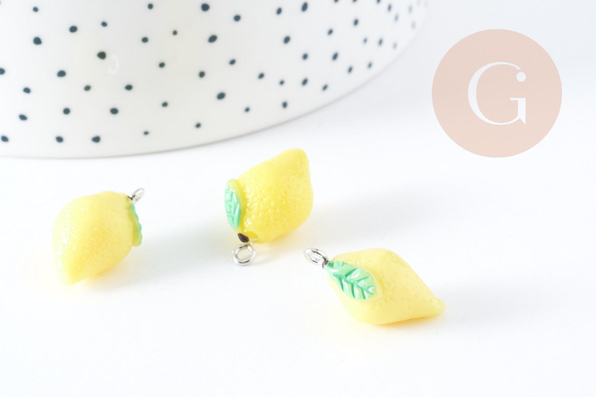 Adopta este magnífico colgante limón en resina amarilla, con acabado hierro platino , que mide entre 20 y 24 mm. Añade un toque de frescura veraniega a tus creaciones de joyería con este colgante de cítricos.
