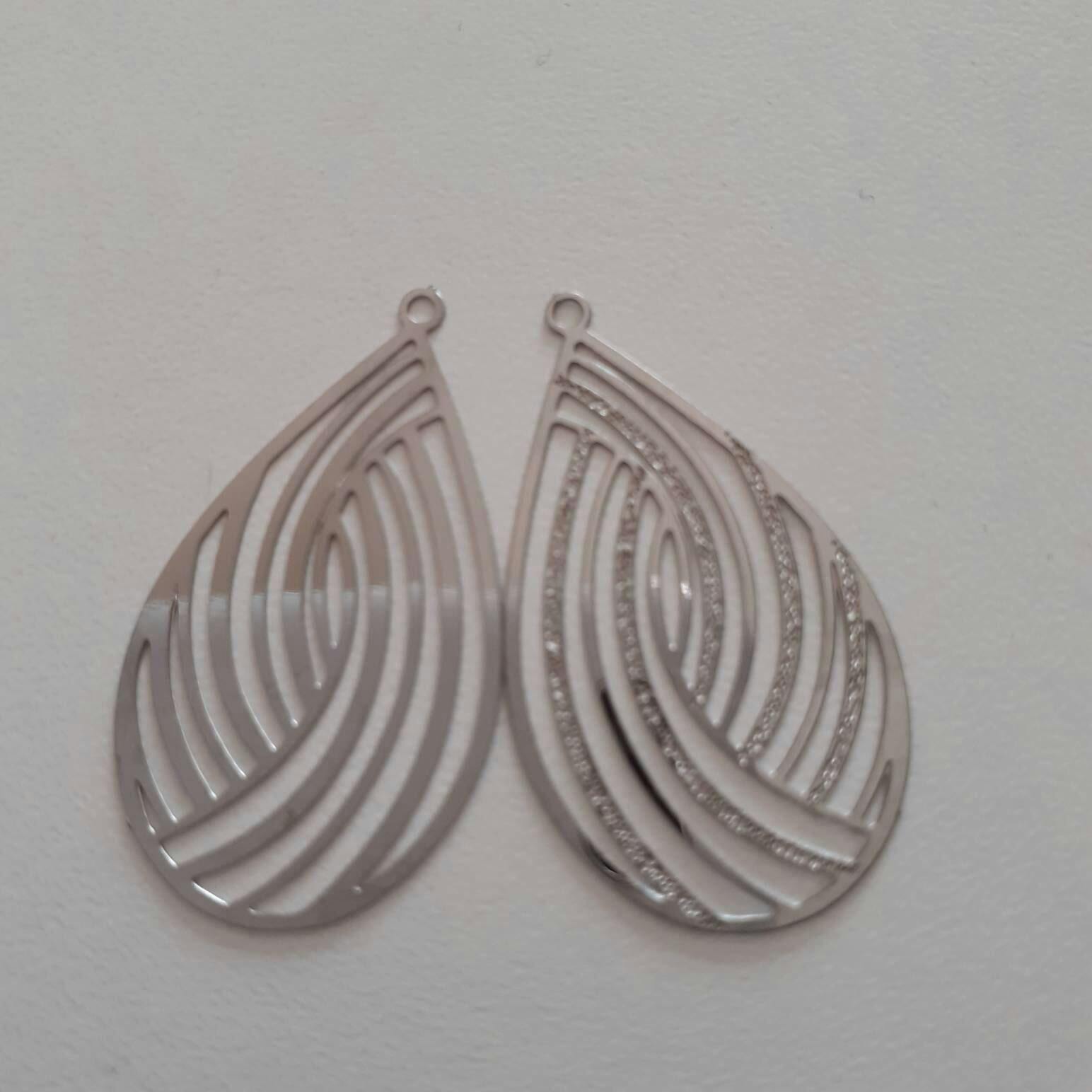 Colgante de lágrima de filigrana en acero inoxidable 304 plateado texturizado, 32x18mm, colgante muy fino y ligero x2 (G4113)