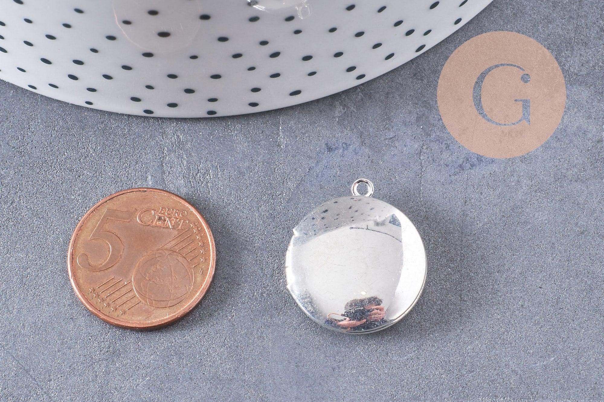 Adopte este bonito colgante medallón de zamac plateado de 20 mm. Éste se abre para que puedas introducir una foto de tu familia, de una persona fallecida o de tu pareja.