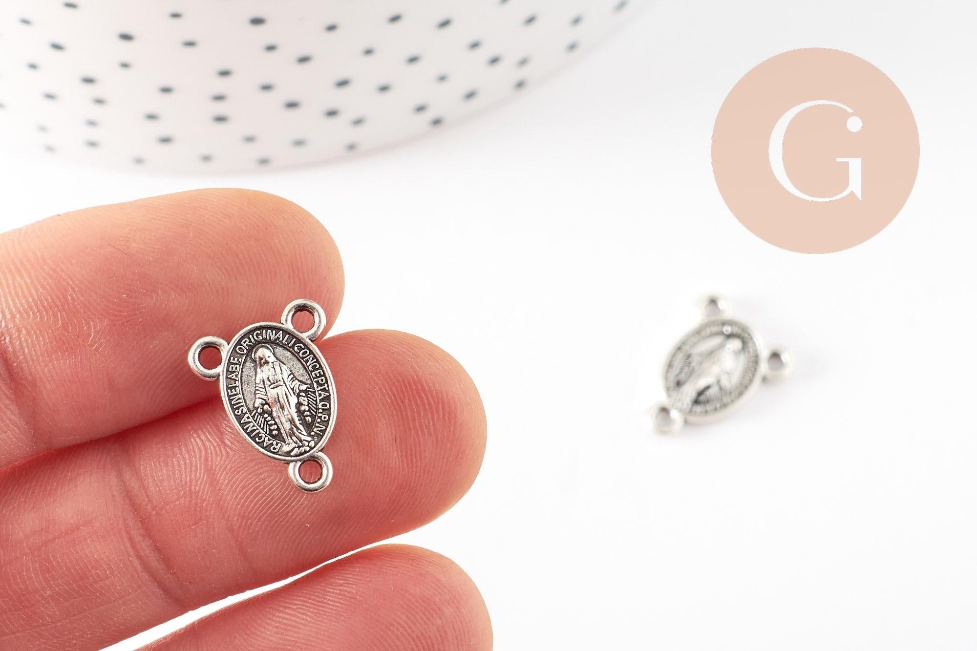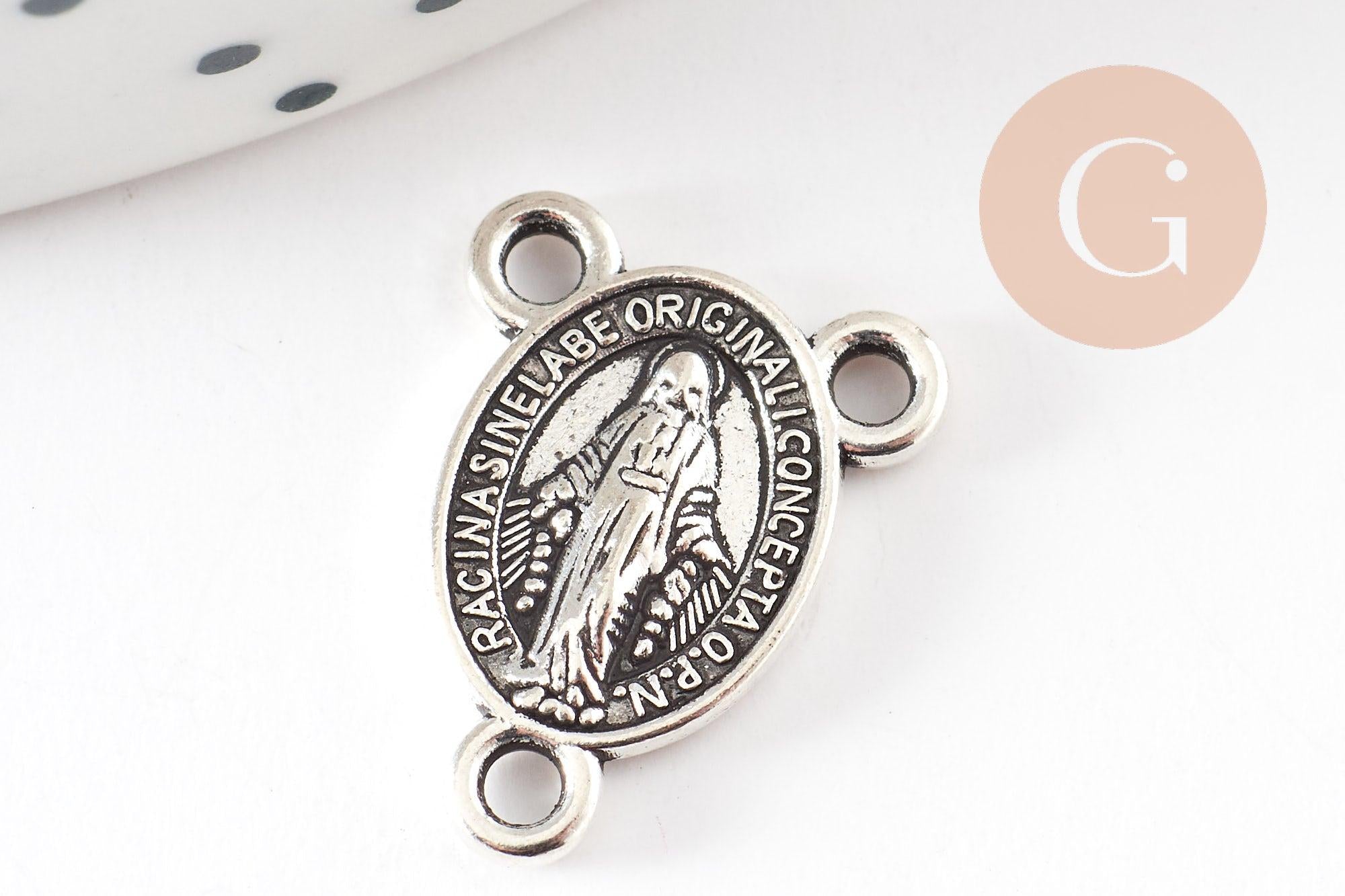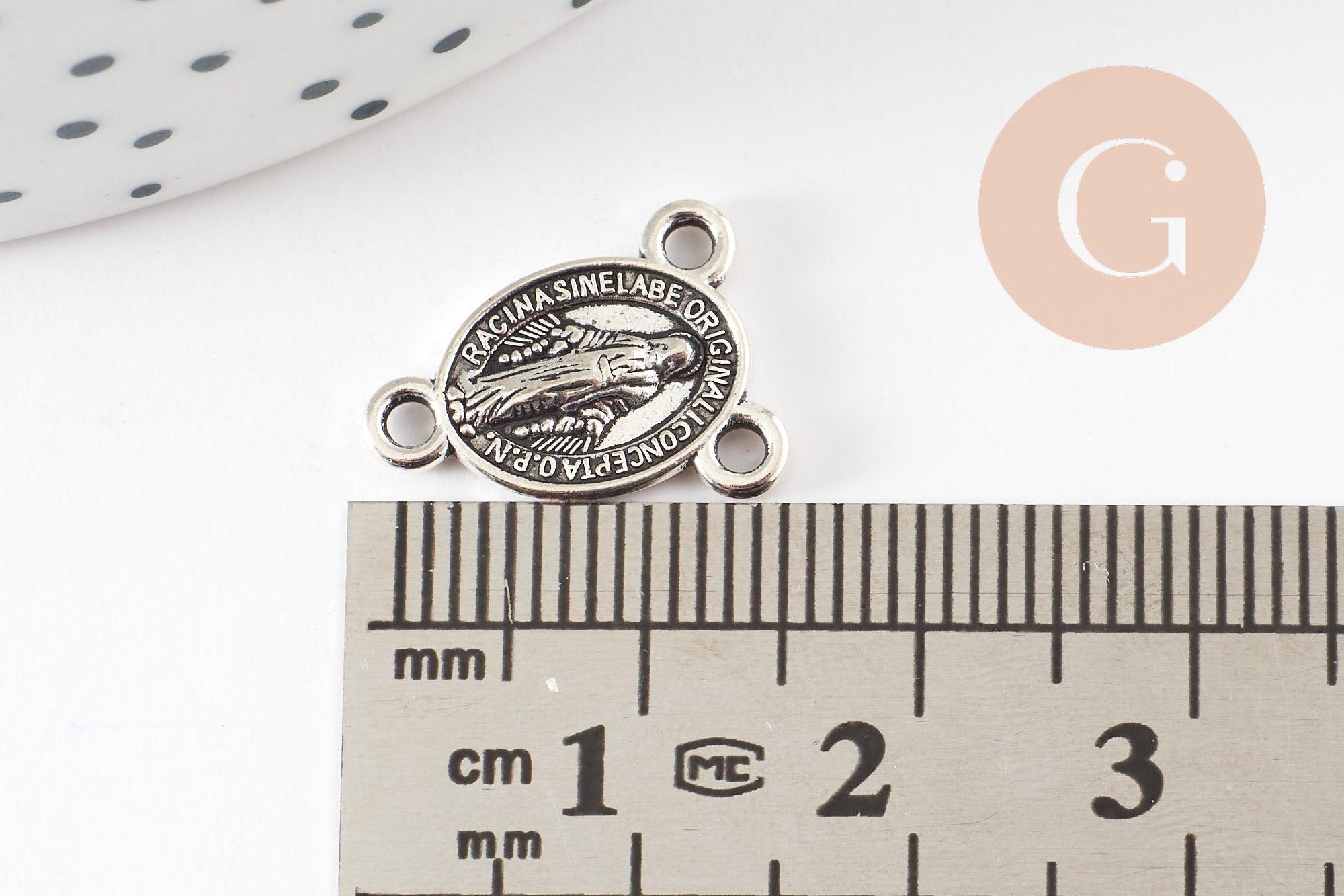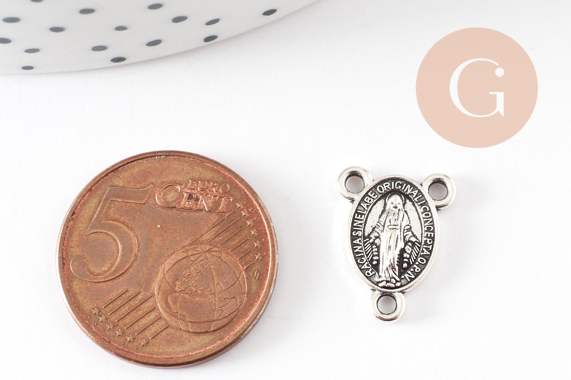 Pendentif médaille ovale Vierge Marie zamac argenté 3 attaches 15.3mm, pendentif création rosaire, x2 G9382