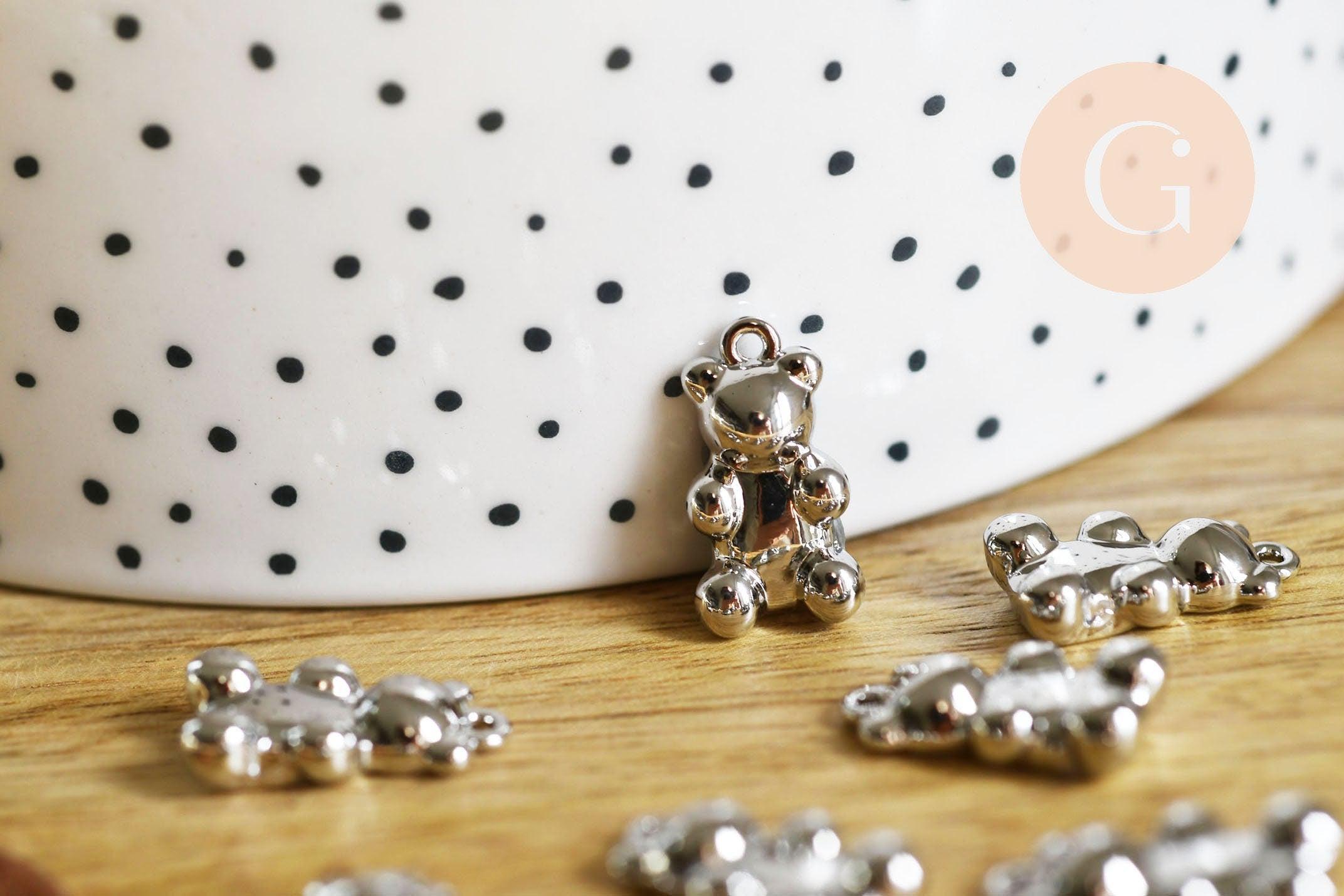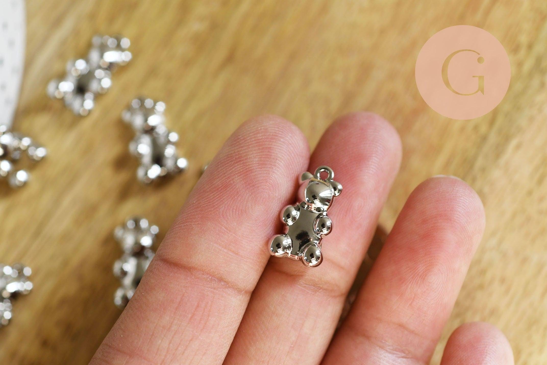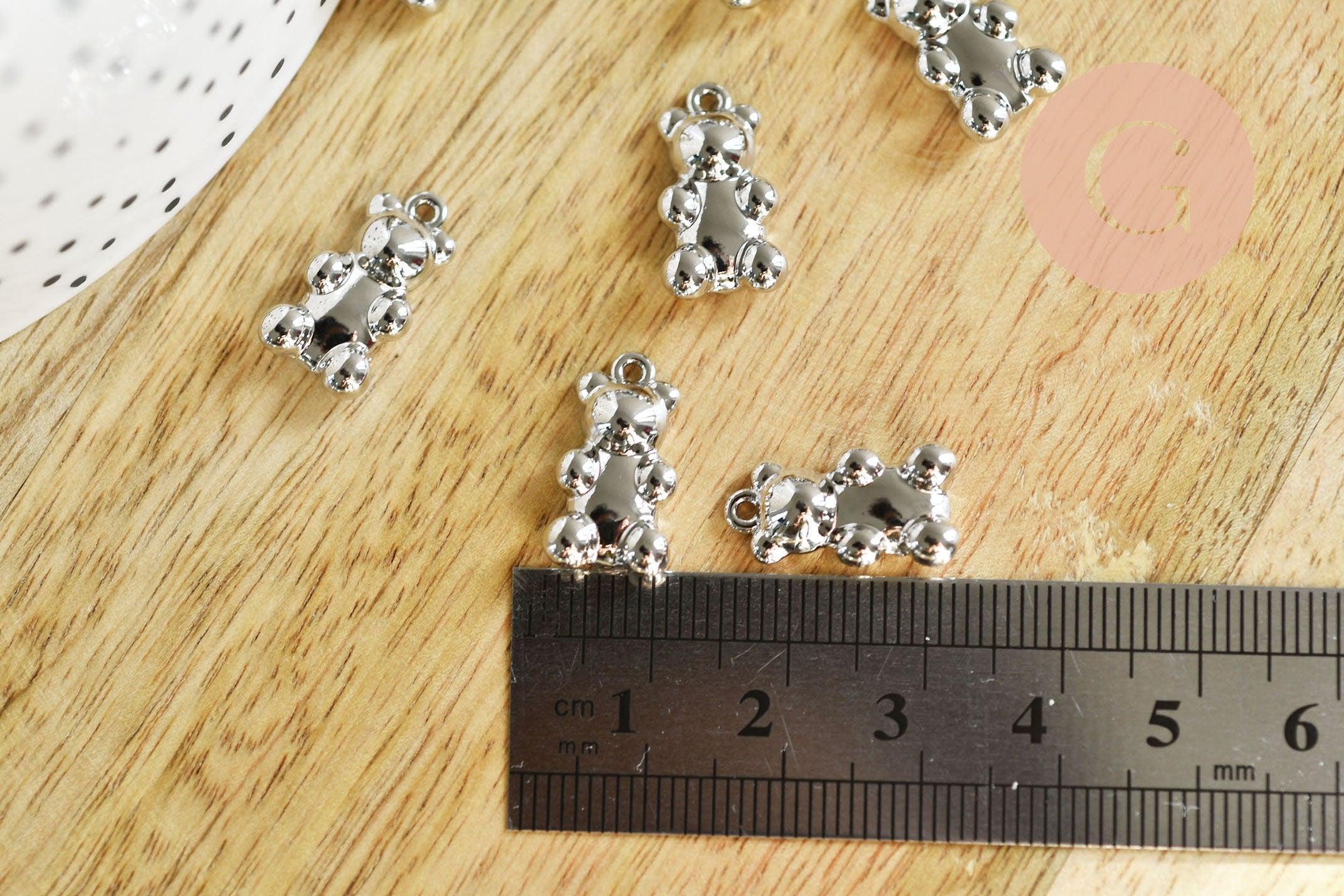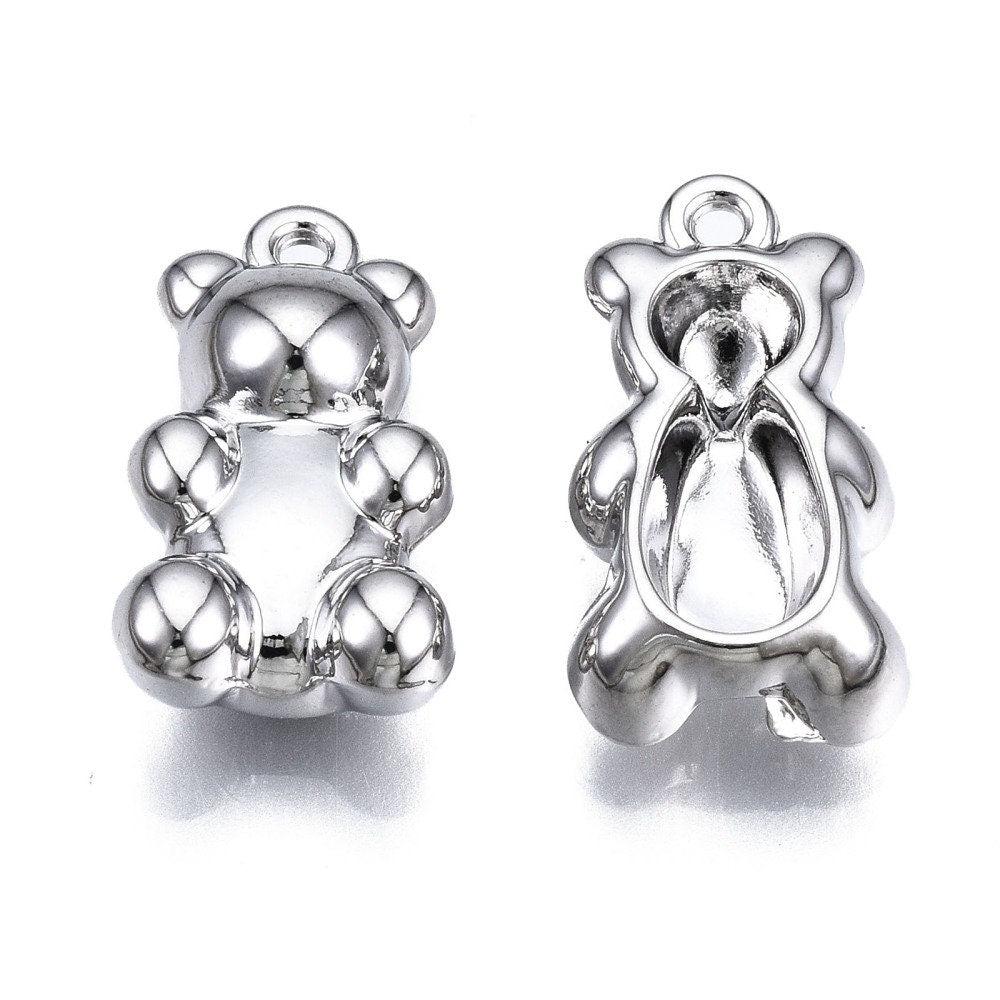 Colgante de oso de zamac bañado en plata de 18 quilates de 20 mm, colgante de latón de juguete, joyería infantil, x1 (G6286)