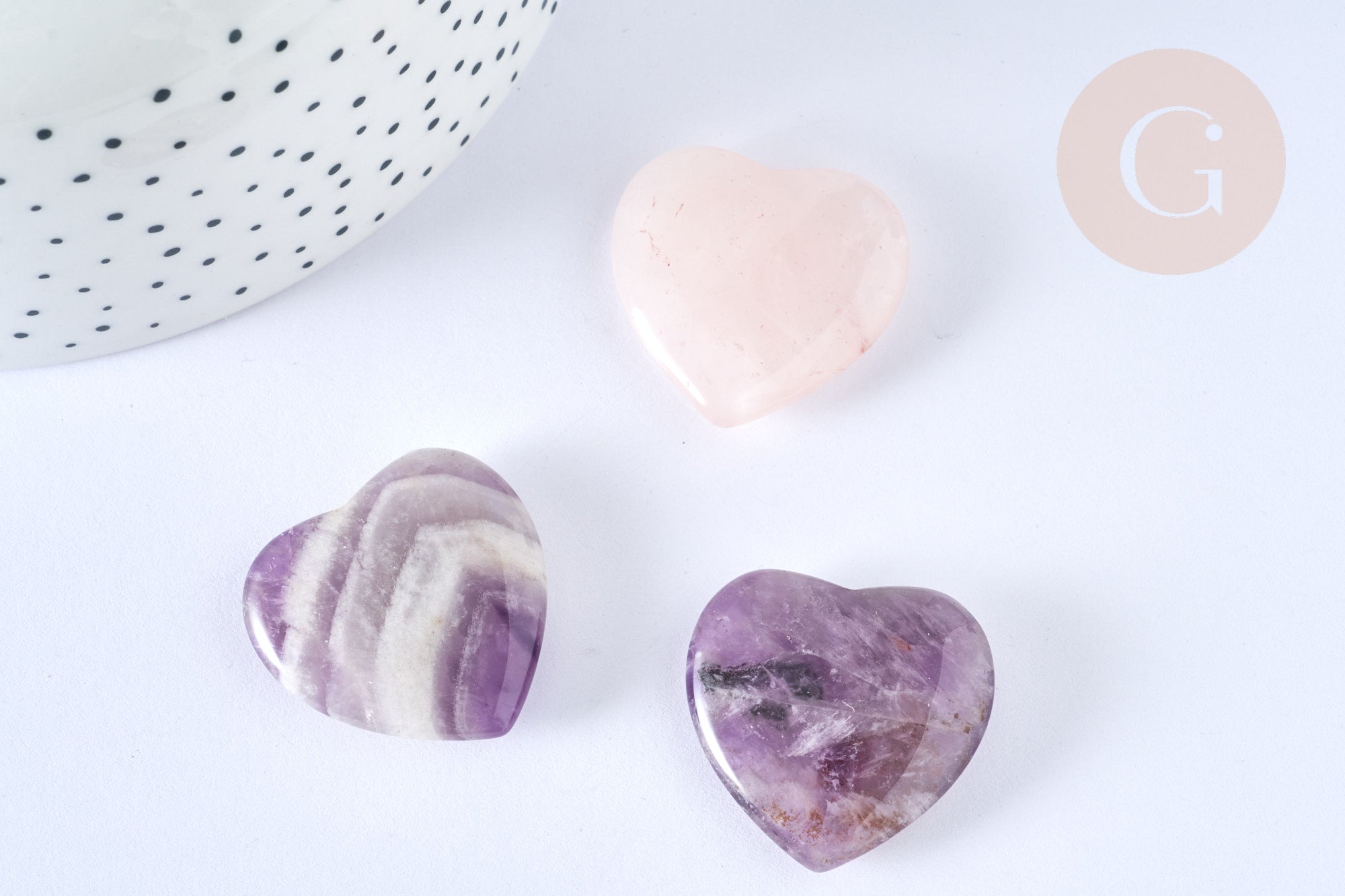 Cristal natural decorativo de amatista/cuarzo rosa en forma de corazón para sanación con cristales, 29 mm, sesión de sanación con cristales, 1 unidad (G7174)