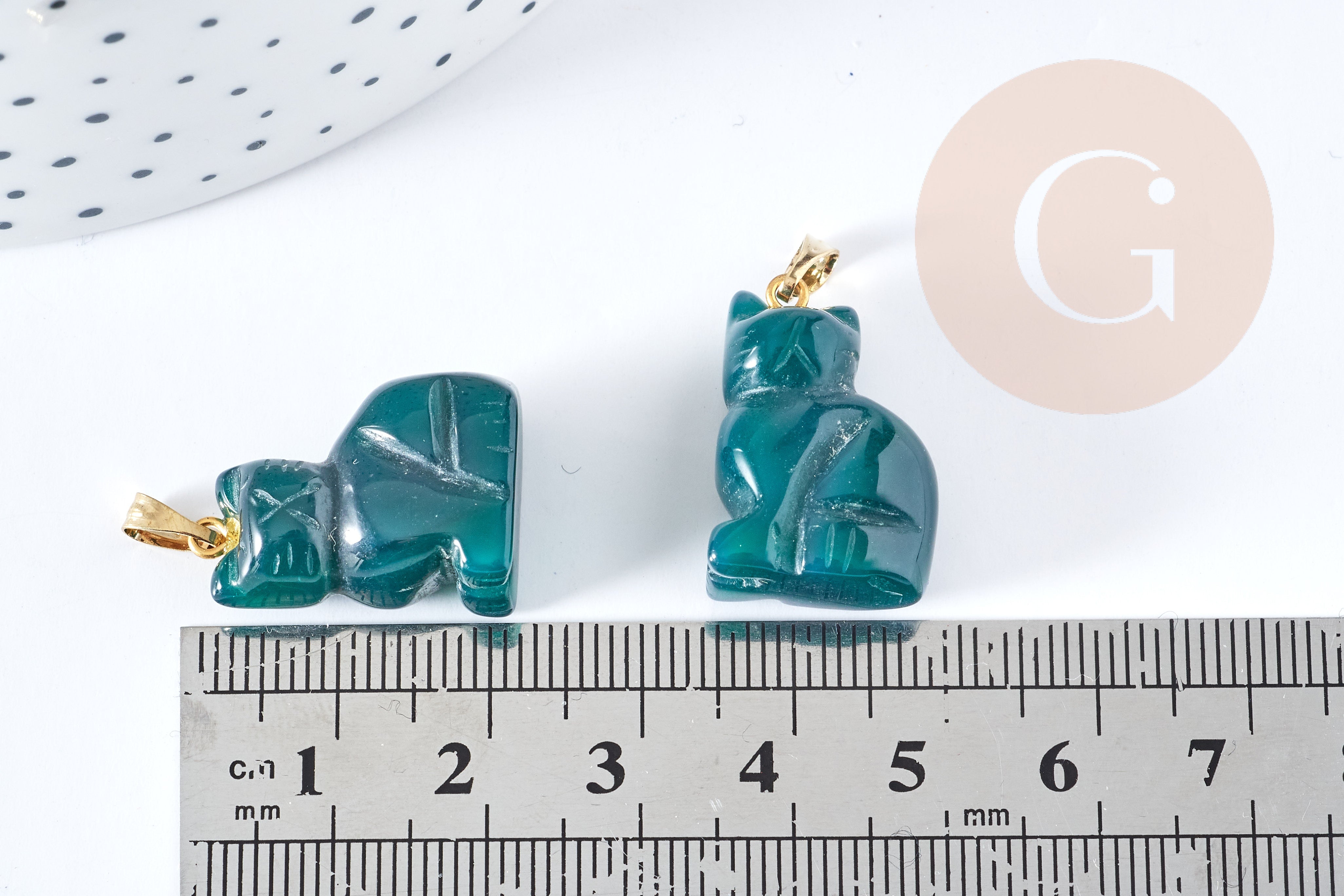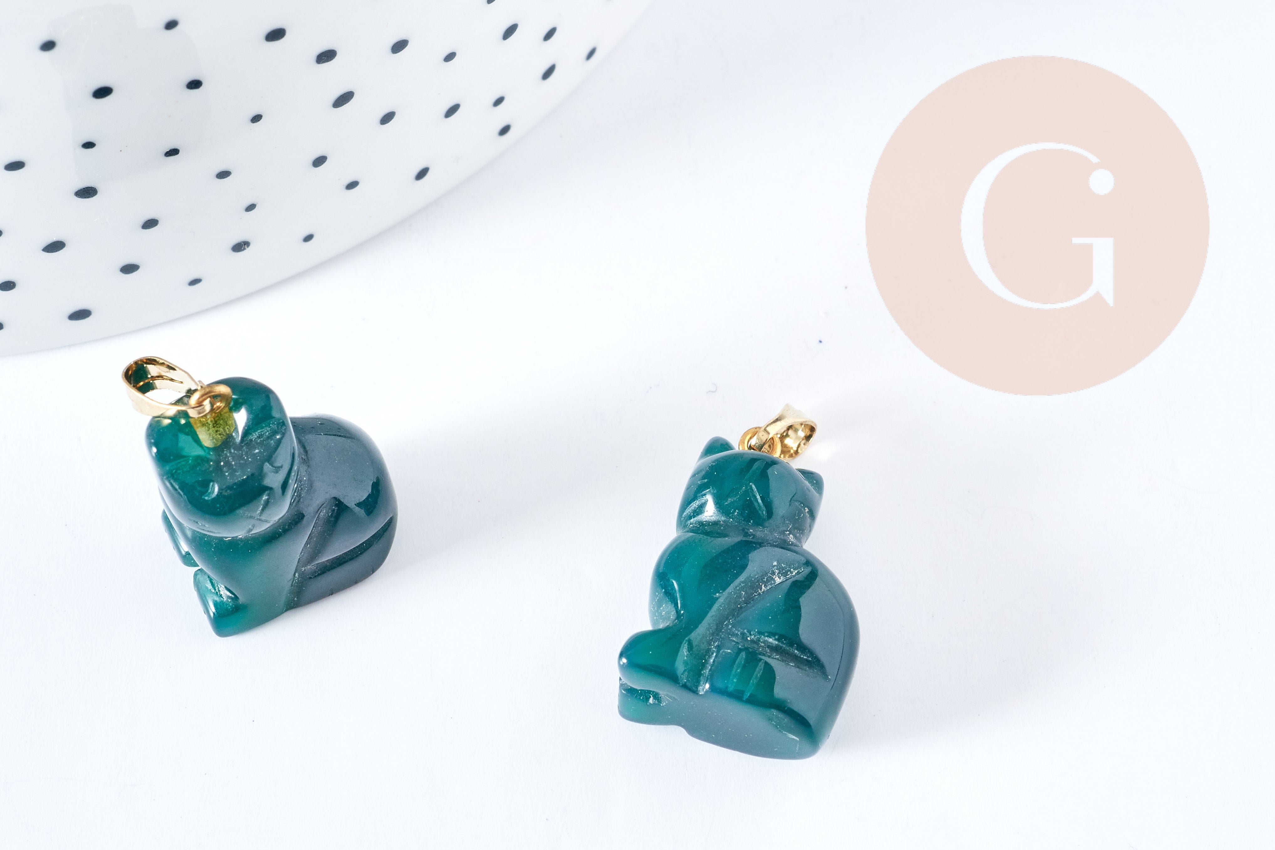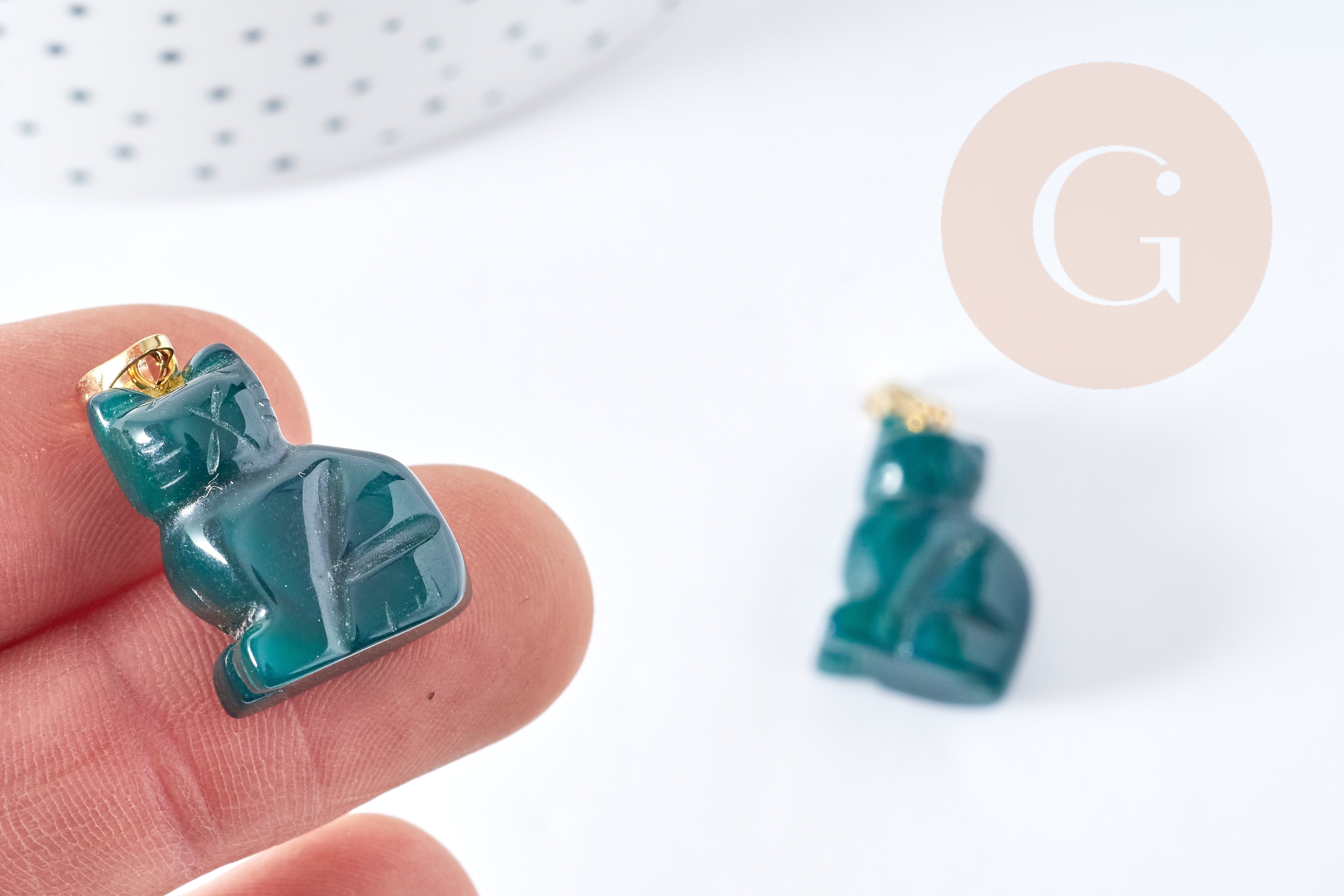 Colgante gato sentado ágata verde natural soporte dorado 23mm, creación de joyería colgante de piedra, x1, G8637