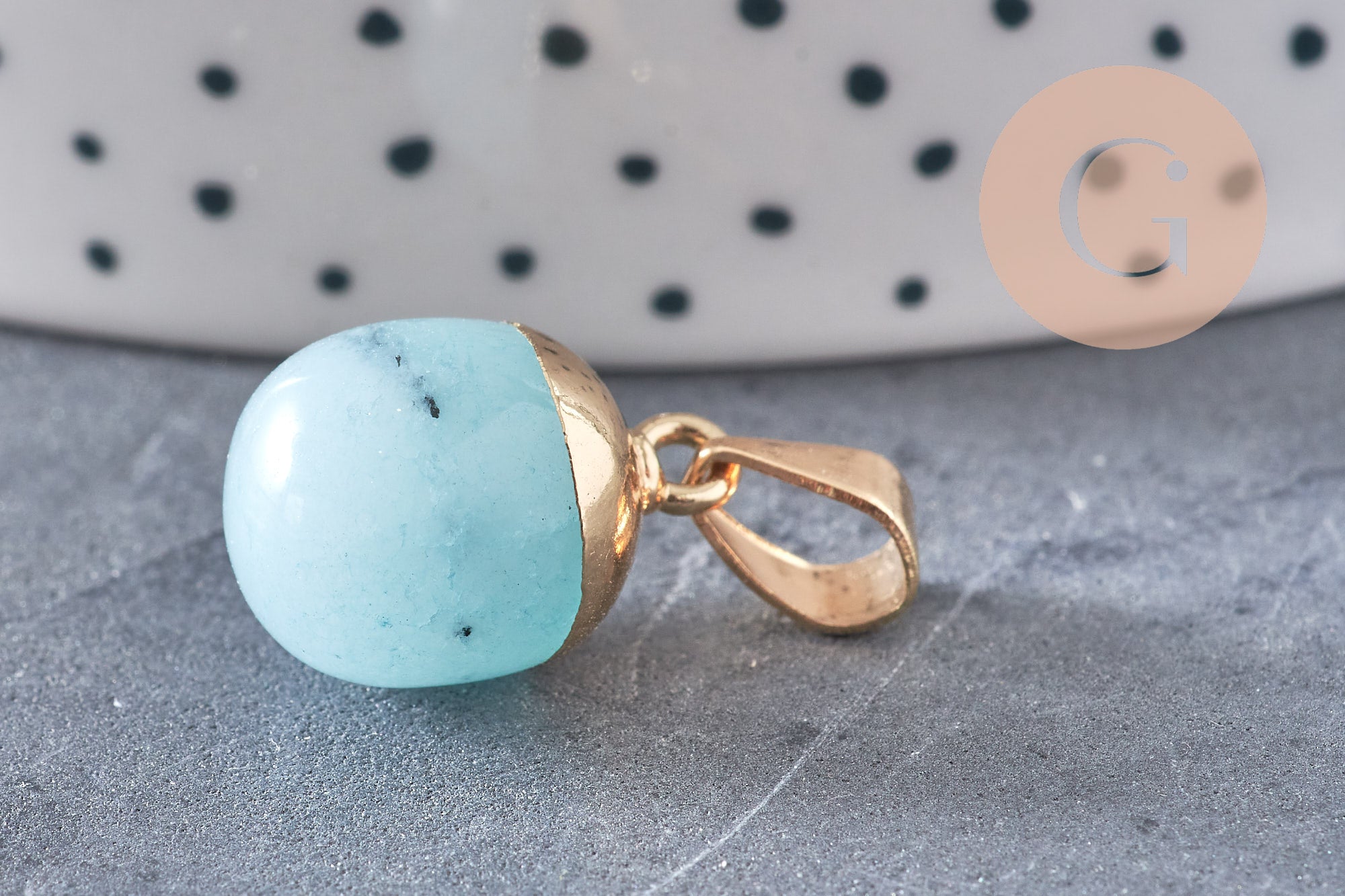 Colgante de jade turquesa dorado, suministros creativos, colgante de piedra, jade natural, jade azul teñido, 17-19 mm