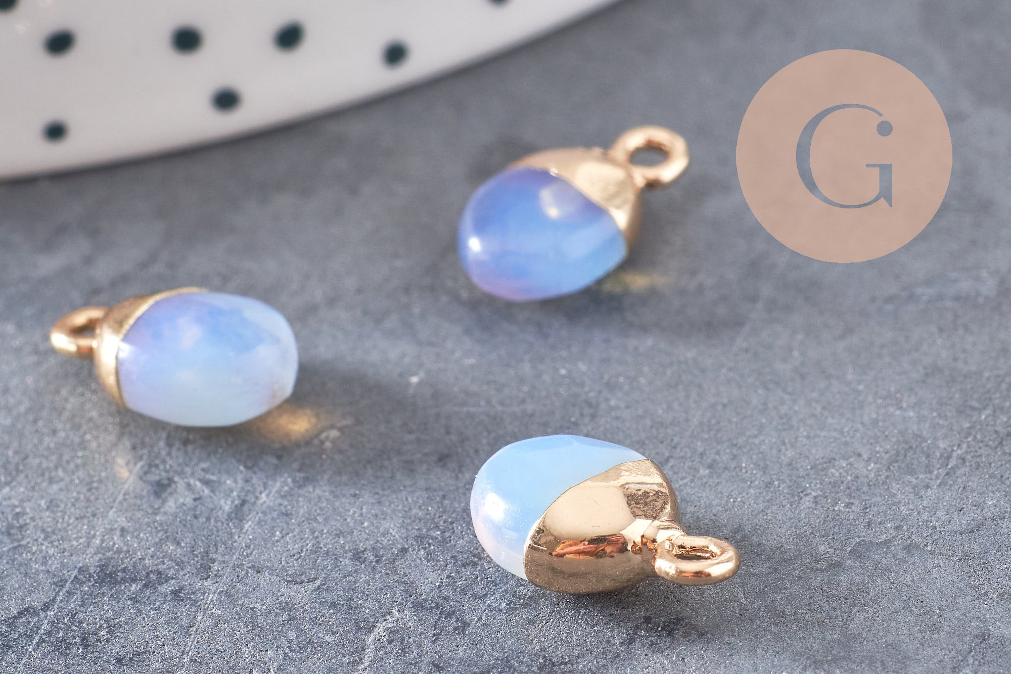 Añade un toque luminoso y místico a tus creaciones con este colgante facetado de lágrima de opalita , montado sobre una base de oro.