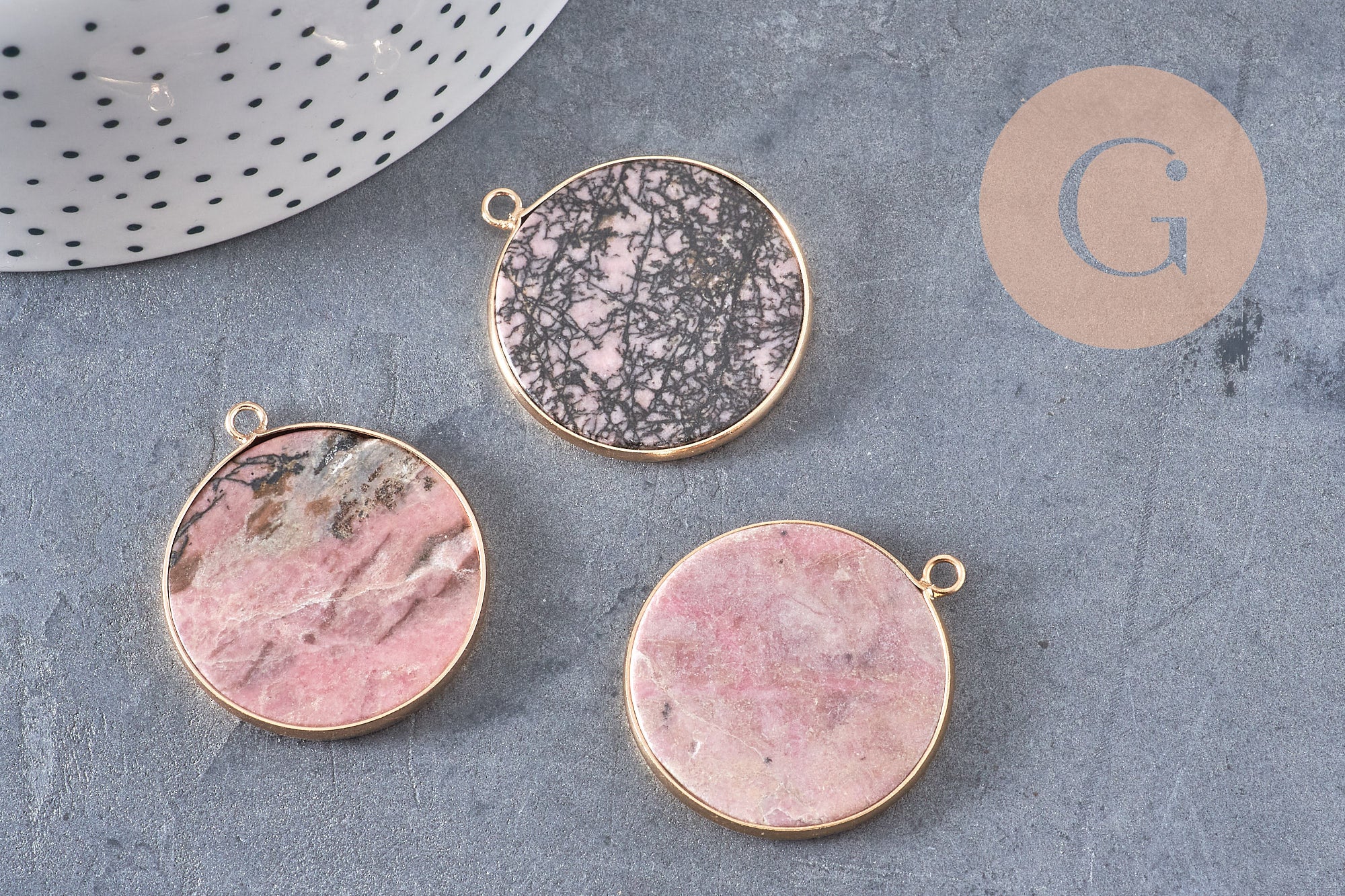 Colgante rodonita redonda, colgante de joyería, colgante de piedra, rodonita natural, colgante rodonita, 35mm, unidad