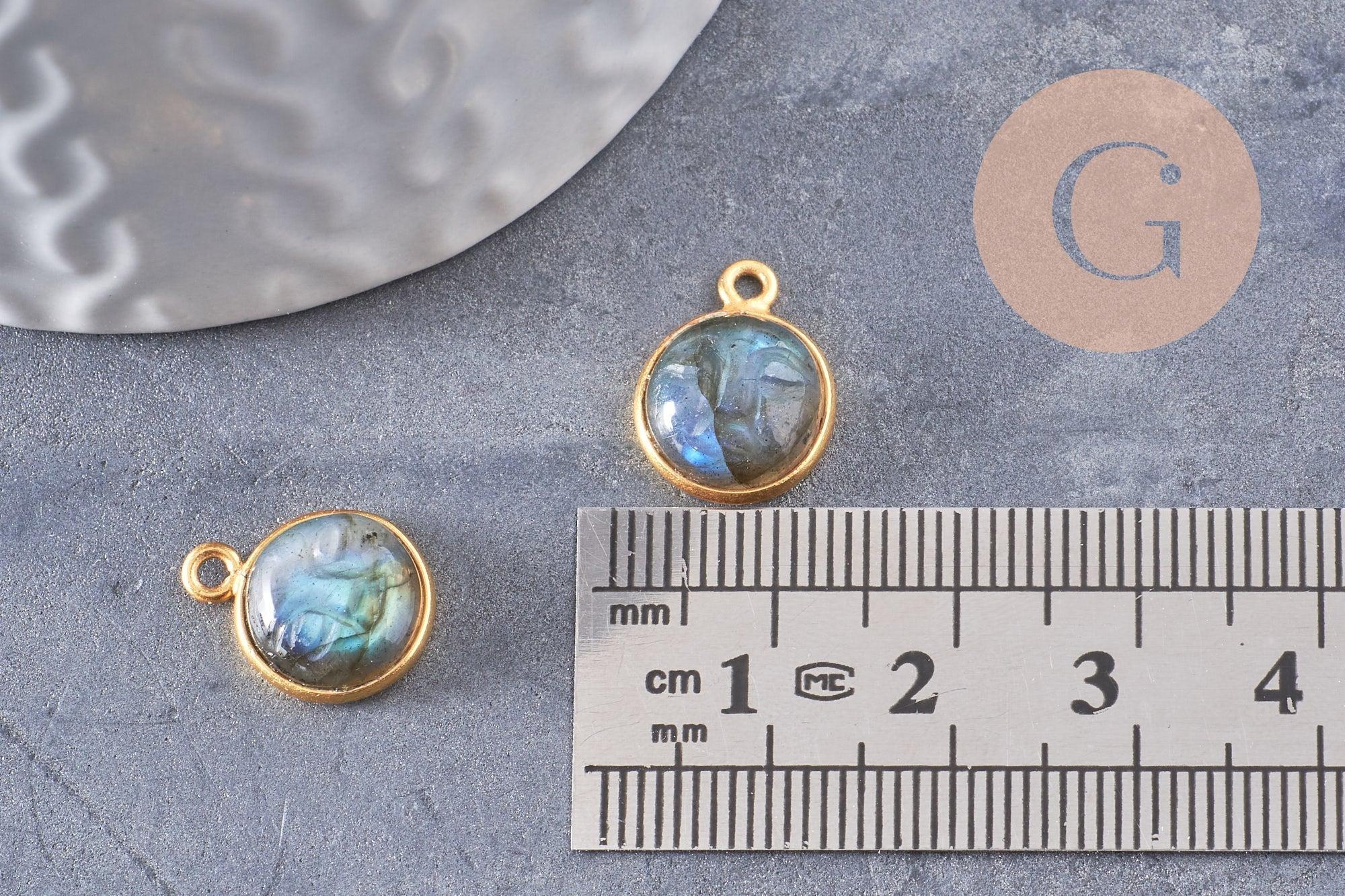 Colgante cara de luna labradorita natural plata 925 baño oro 18K 19mm, colgante amuleto de piedra natural x1 (G9877)