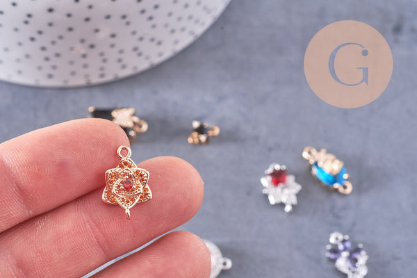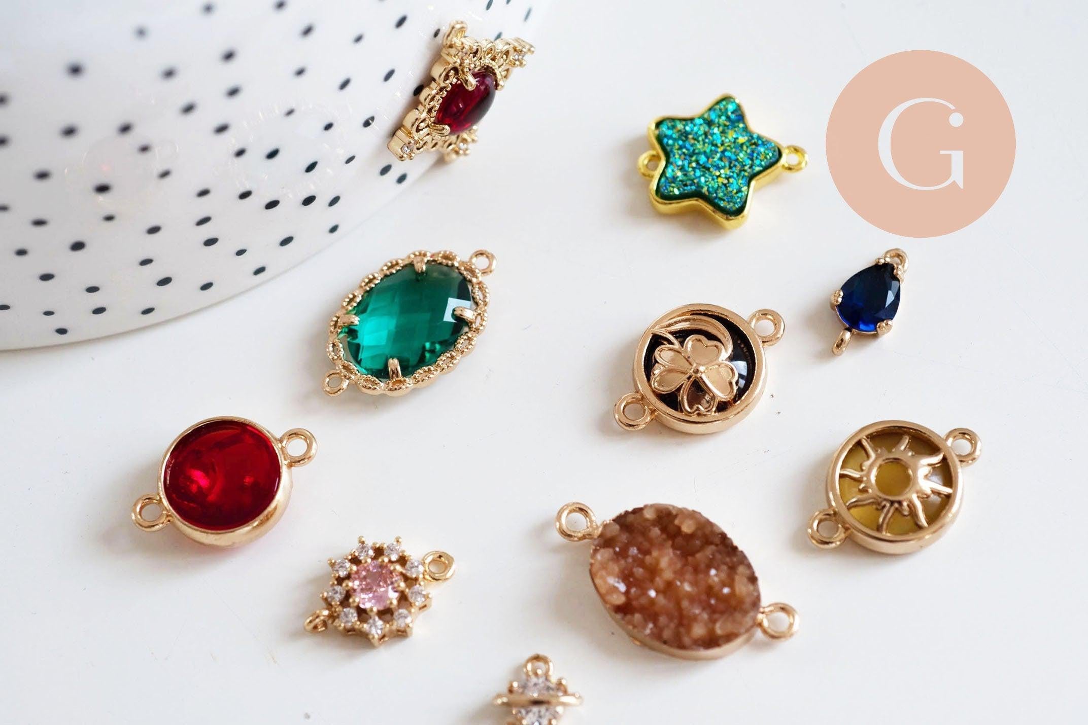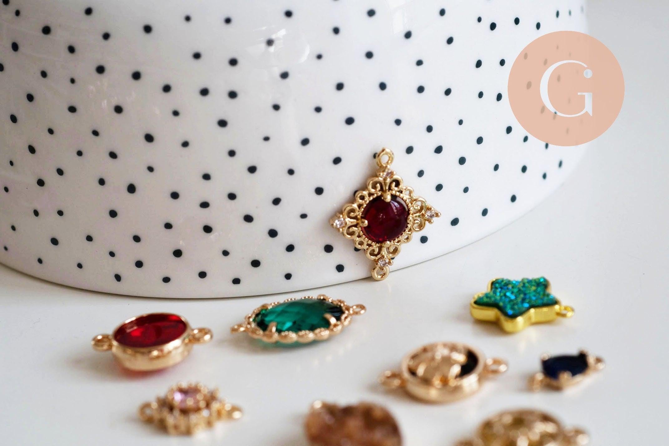Colgante de vidrio, piedra, resina, drusa, zamac y chapado en oro, 10,5-26 mm, 1 unidad (G6415)