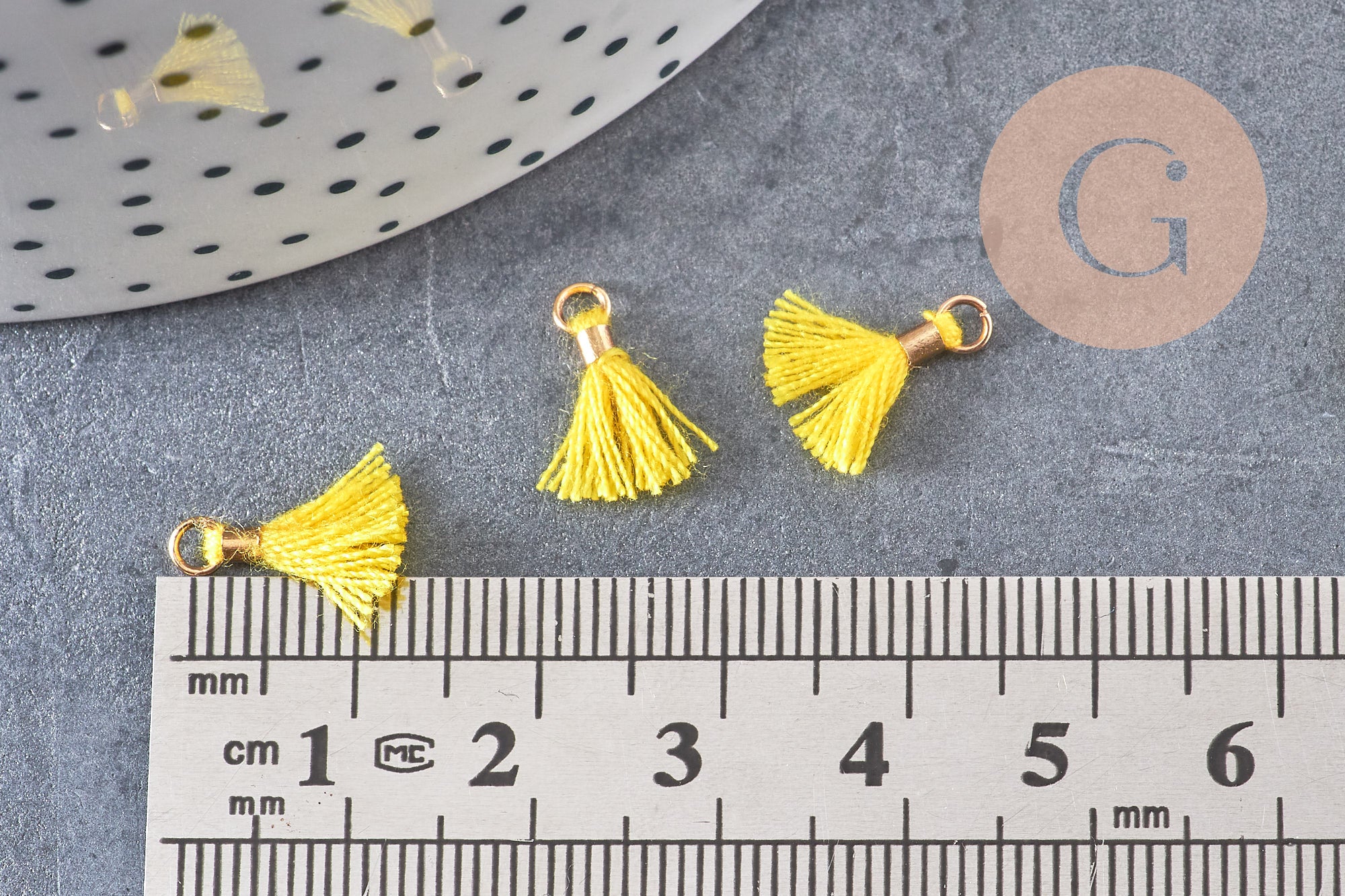 Pompones amarillos de poliéster con reverso dorado, decoración de pompones, presillas para pompones, para hacer joyas bohemias, 10-15 mm, paquete de 10 (G6237)