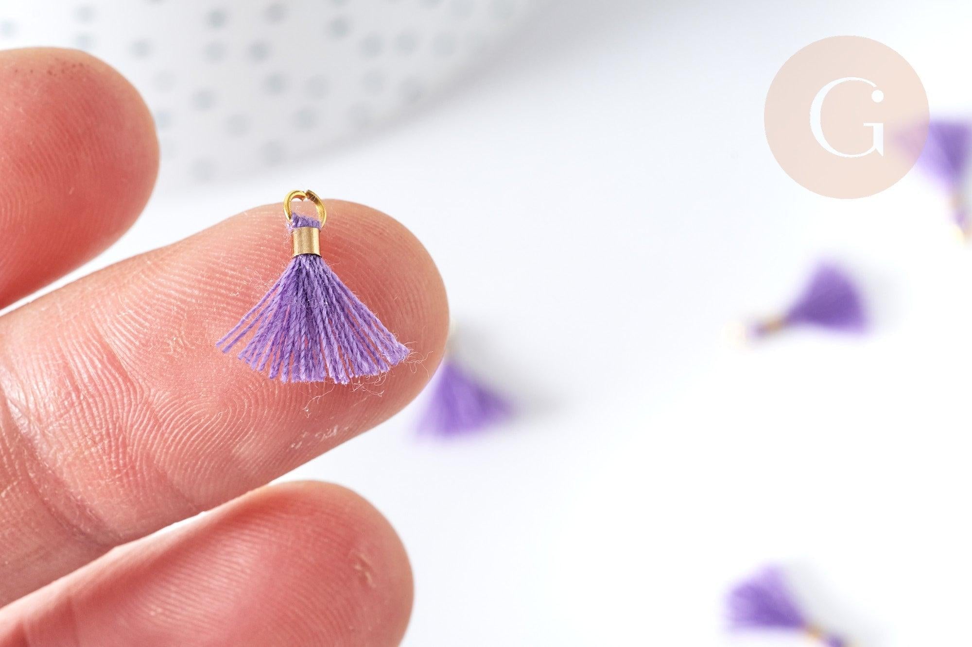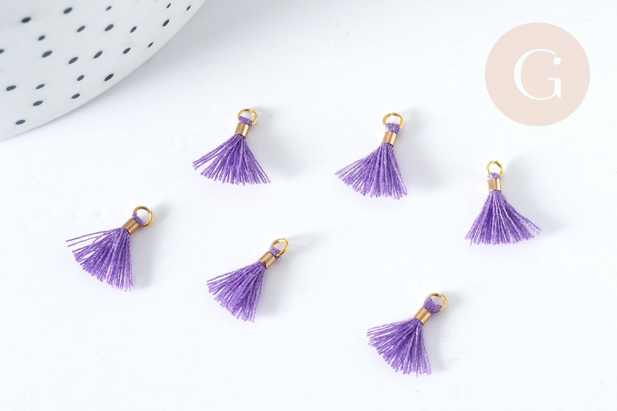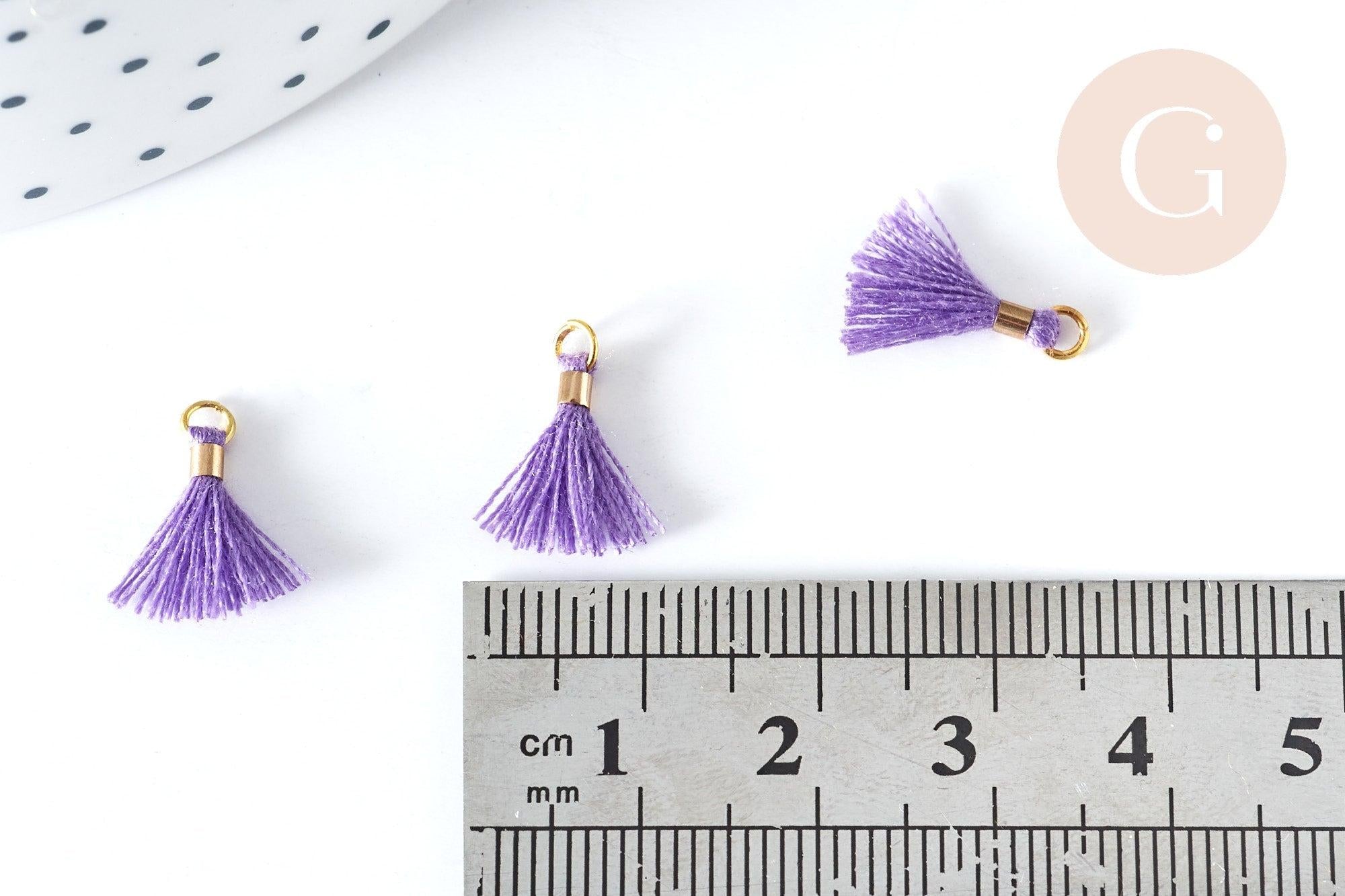 Pompones de poliéster morado con reverso dorado, 10-15 mm, decoración de pompones, bucles de pompones, fabricación de joyas bohemias, x10 (G8220)