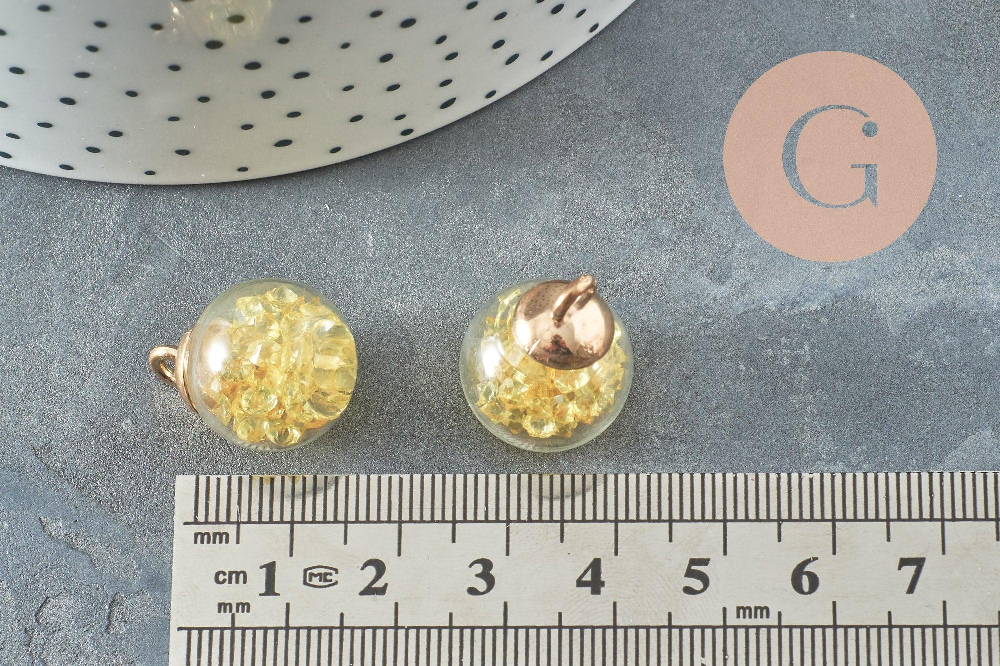 Colgante burbuja vidrio transparente cristal amarillo oro fianza de plástico 21 mm, creación de collar largo, colgante de vitrina, x1 G9751