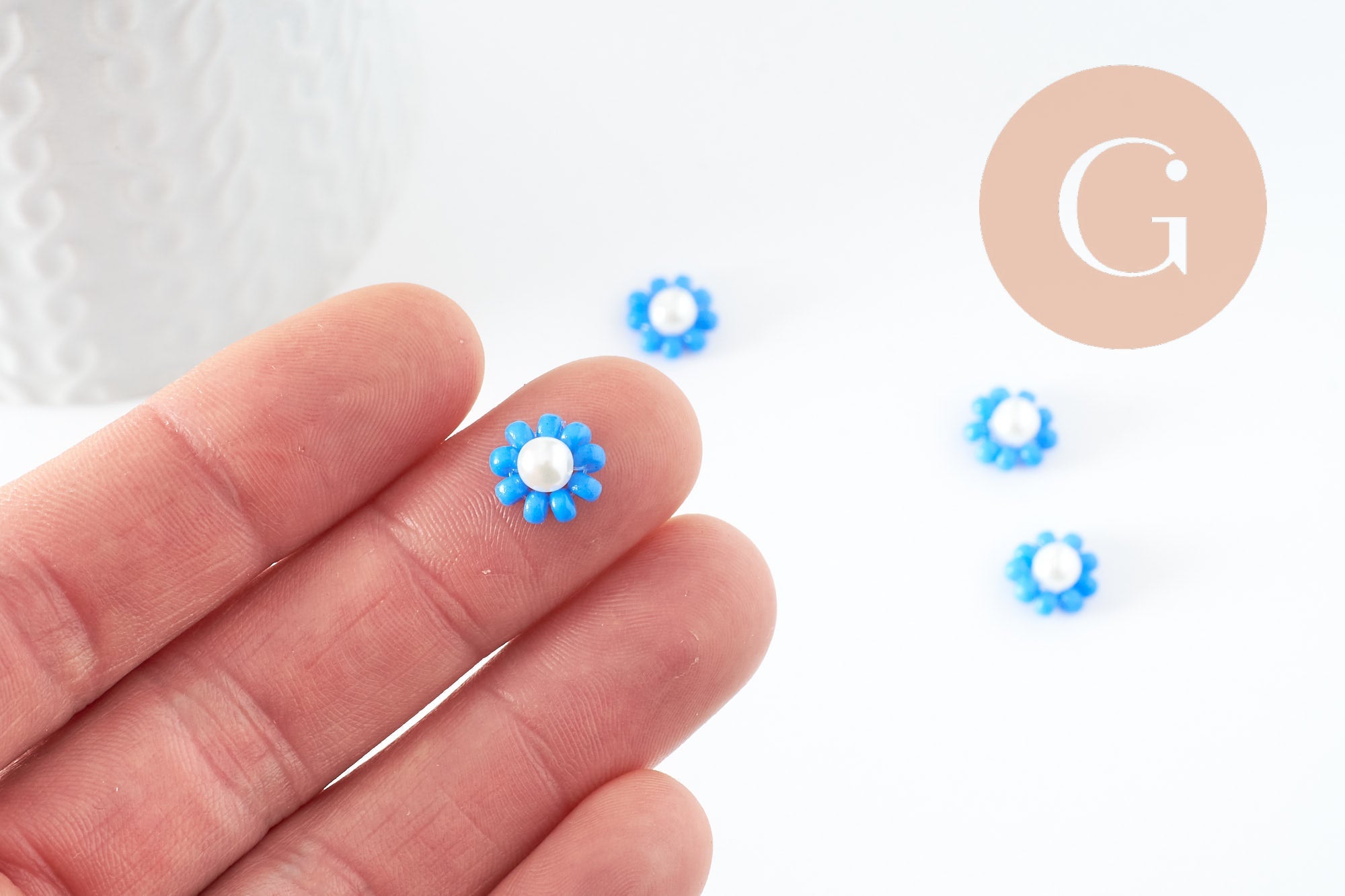 Pendentif connecteur fleur rocaille verre bleu,pendentif verre pour création bijoux, 10mm,x5 (G4025)