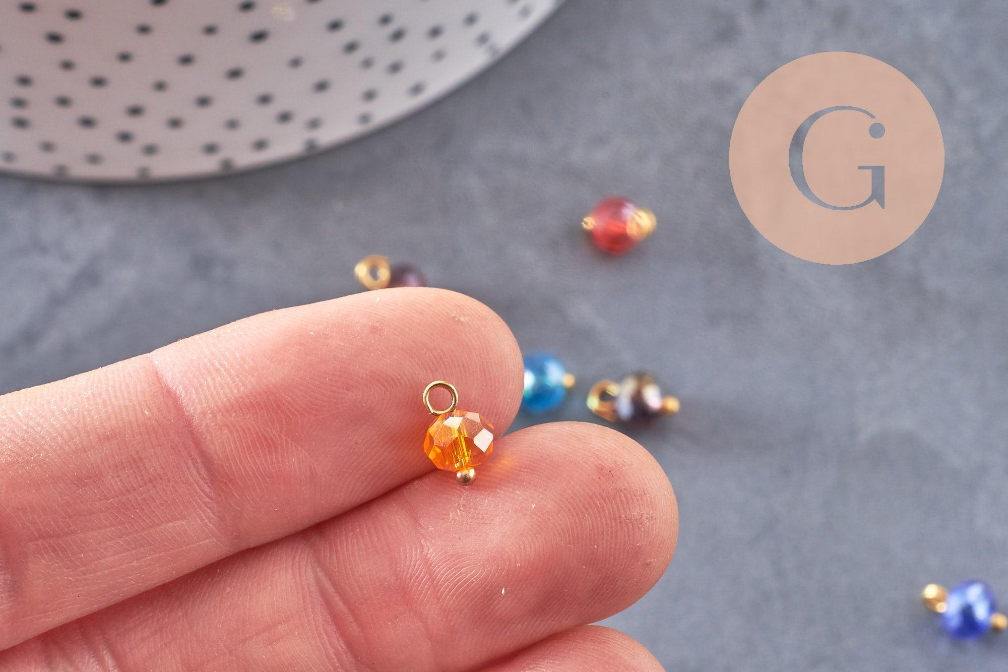 Para joyas coloridas, adopte estos colgantes redondos en vidrio facetado etaiton dorado.