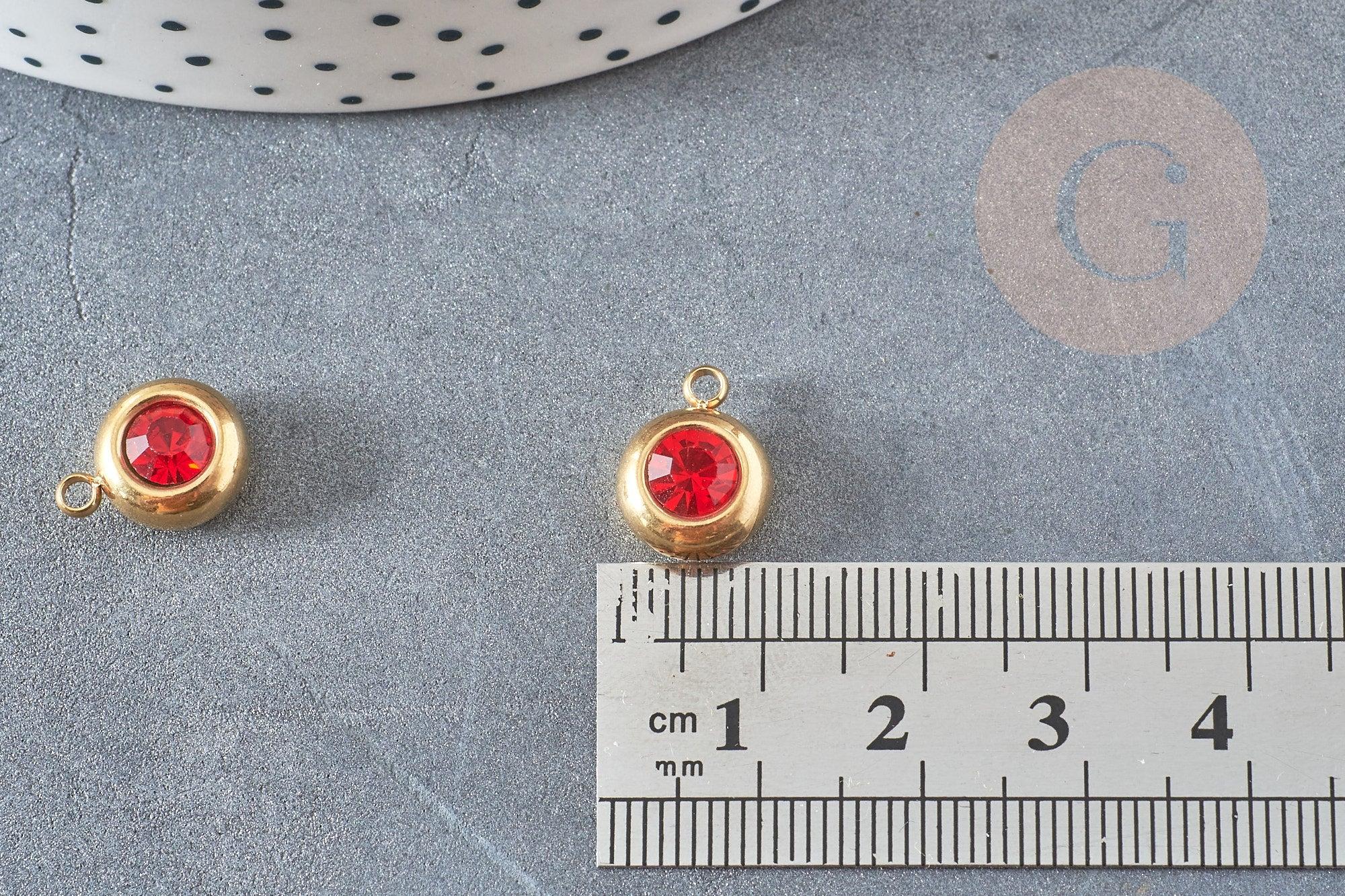 Colgante redondo de acero bañado en oro de 24 quilates con cristal rojo, colgante de cristal, colgante de cristal bañado en oro, creación de joyas, 12 mm, unidad