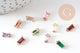 Déjese seducir por estos bonitos dijes de peonza de cristal transparente de diferentes colores, sobre un soporte de latón dorado.