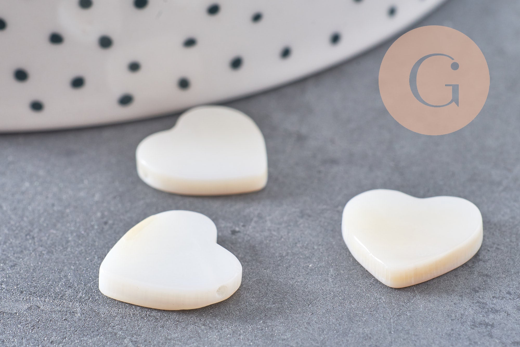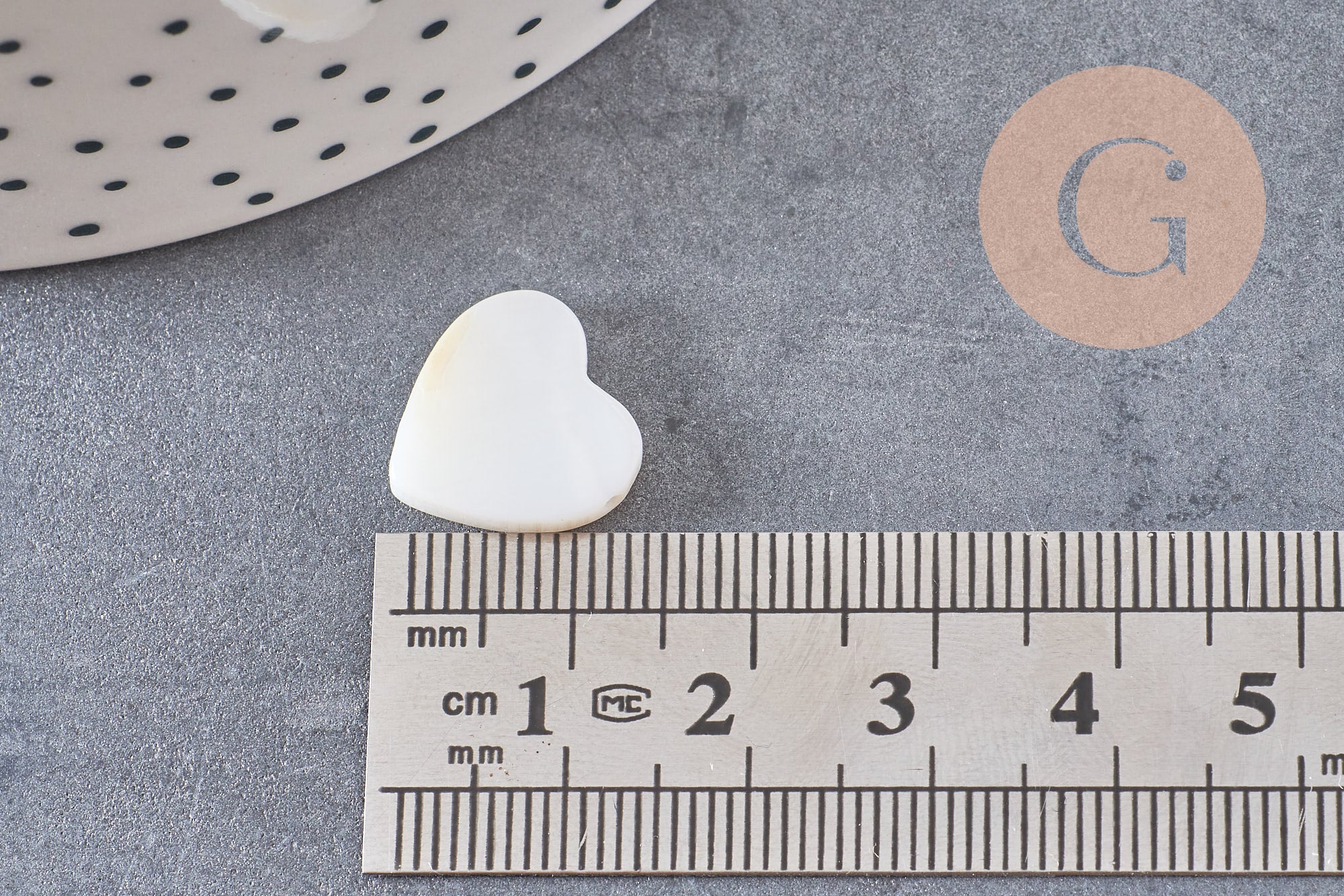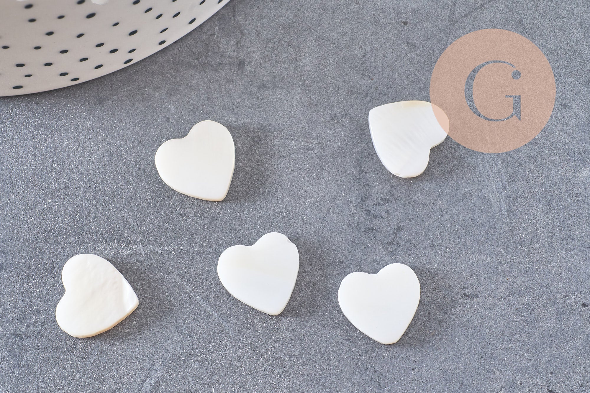 Perles coeur nacre blanche naturelle 13mm, x5 (G1073)