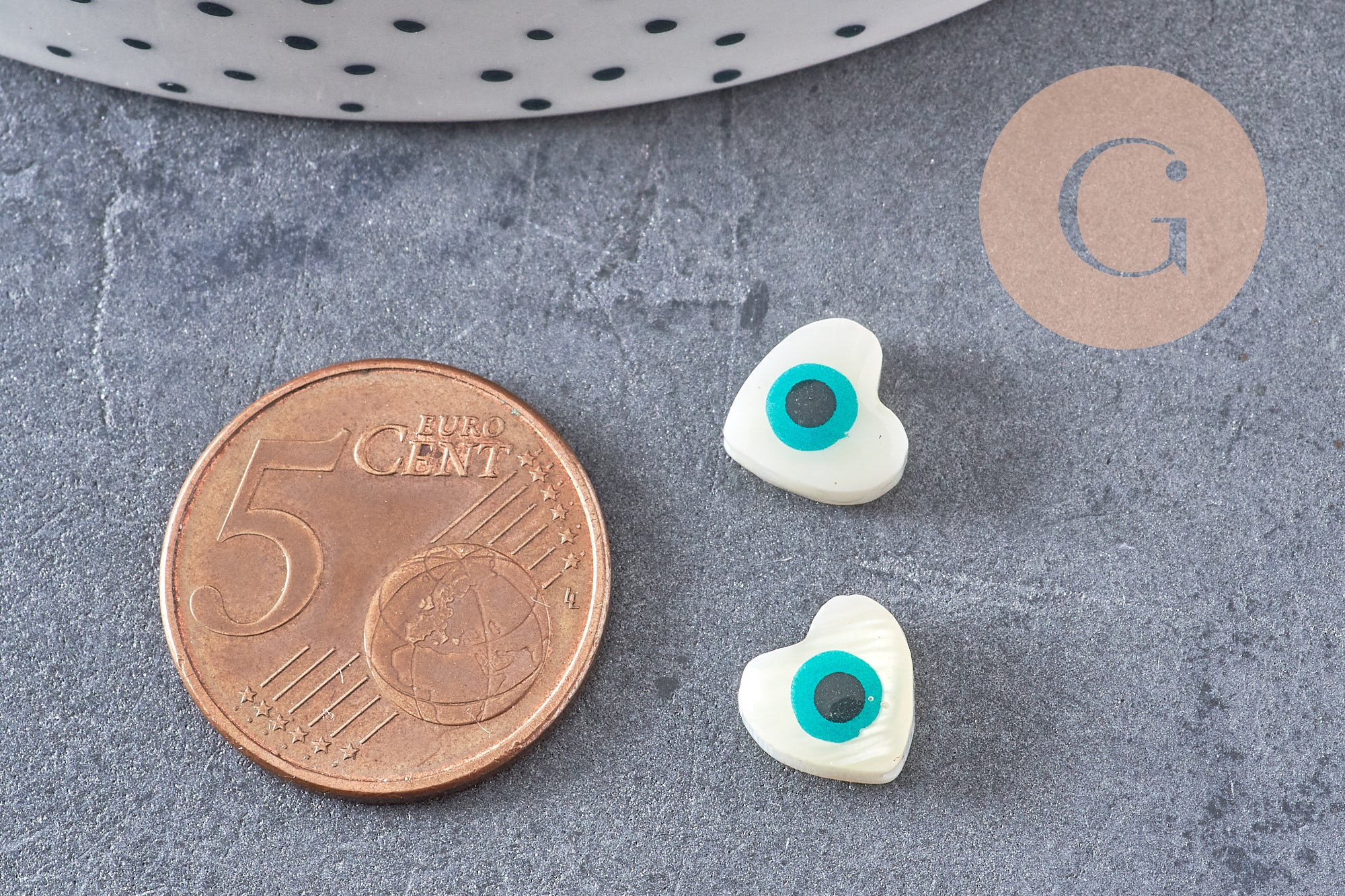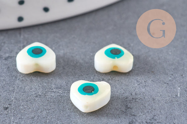 Cuenta de corazón de mal de ojo de nácar blanco, suministros creativos, suerte, cabujón de nácar, gri-gri, 8,5-9 mm, lote de 10