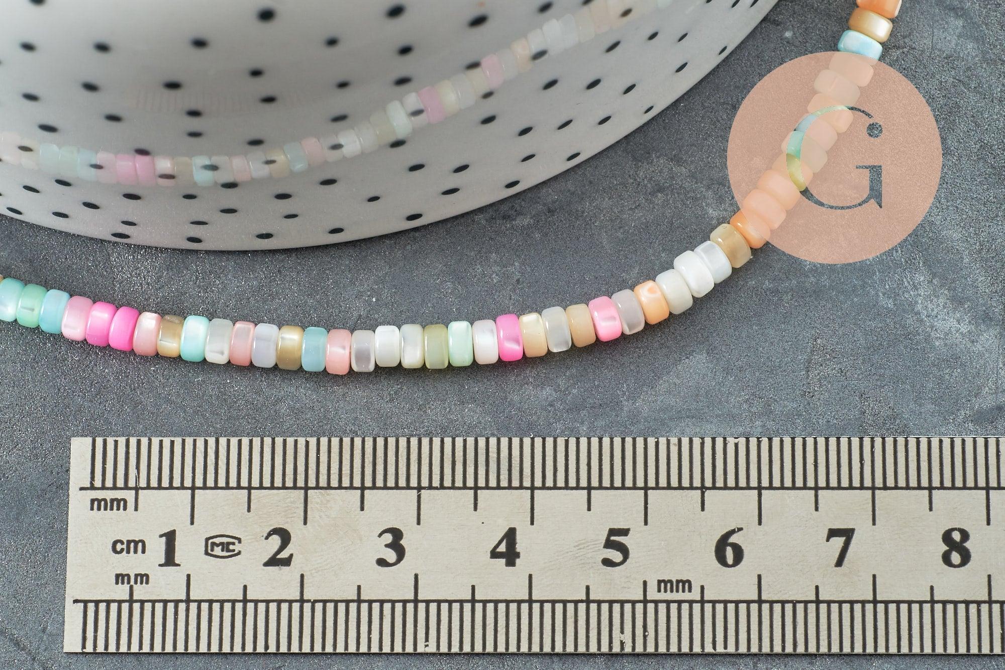 1 hebra completa de cuentas heishi rondelle de nácar multicolor pastel