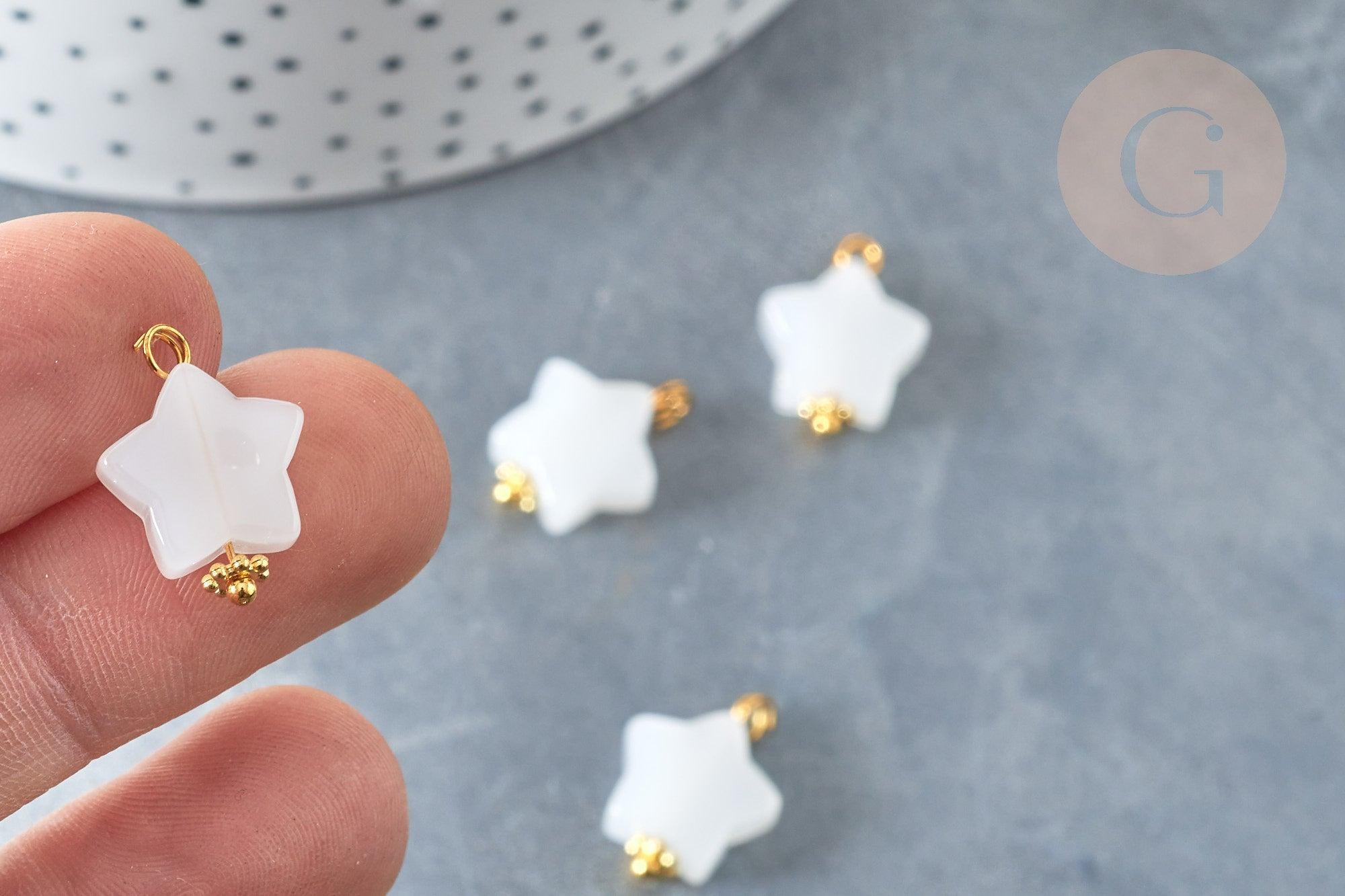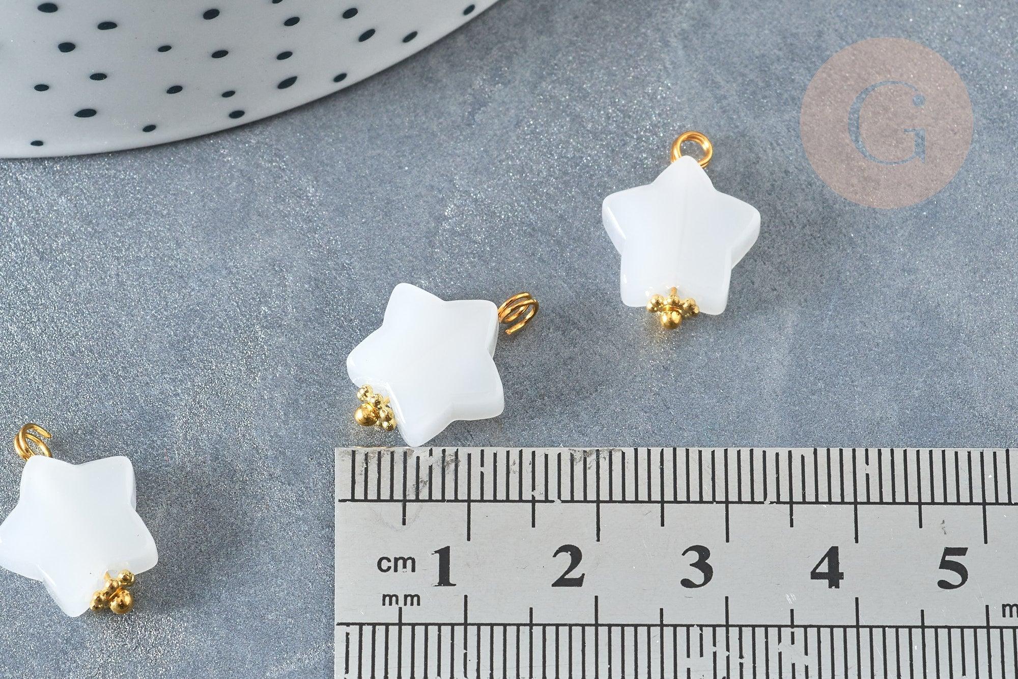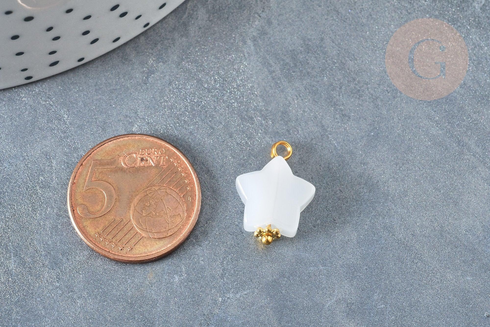 Colgante de estrella de jade blanco natural de latón dorado 17 mm, creación de joyería de piedra DIY, x1 G7901