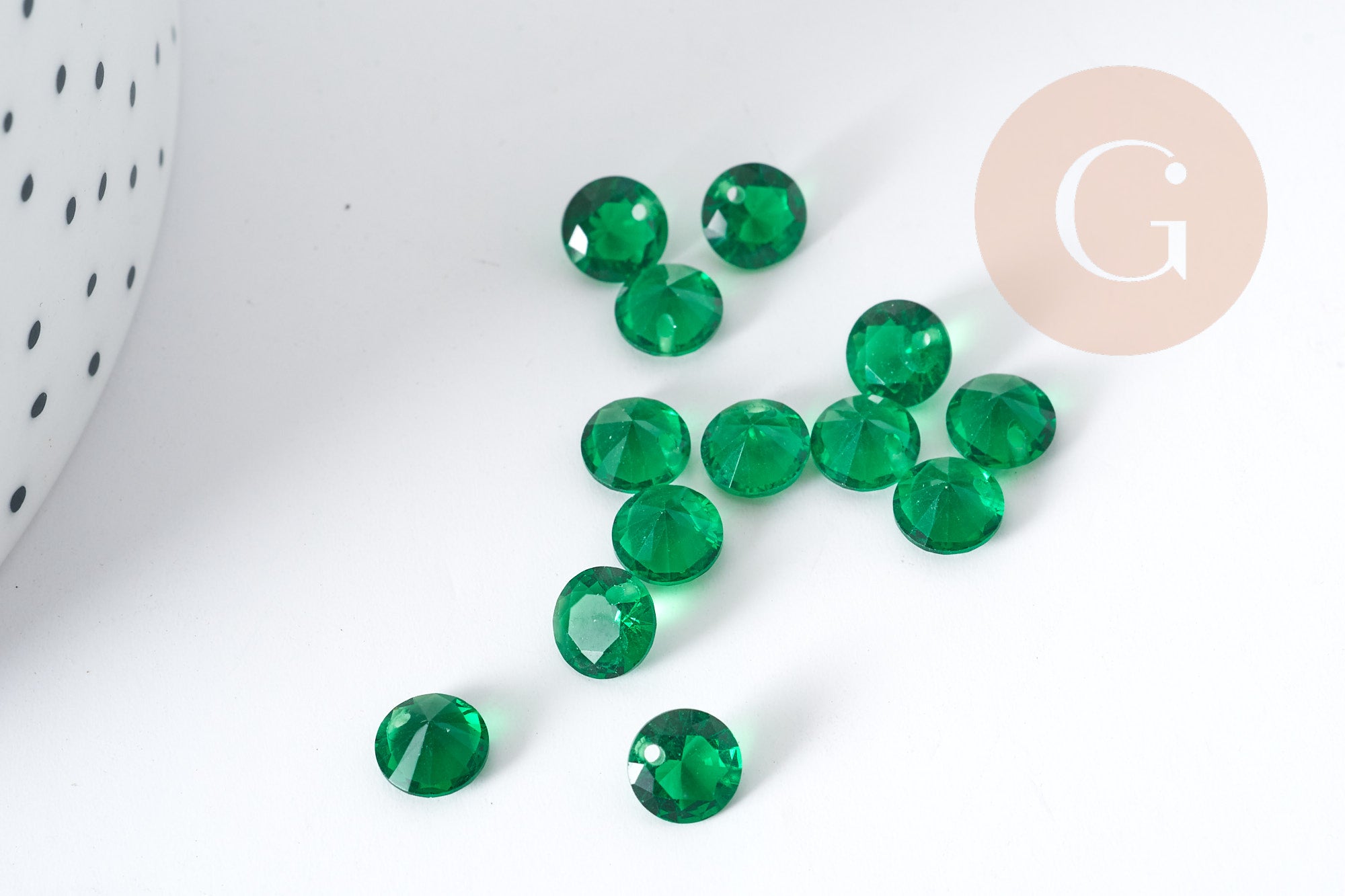 Breloque Ronde zircons vert foncé translucides 6mm, création bijoux cristal, x5 G9012