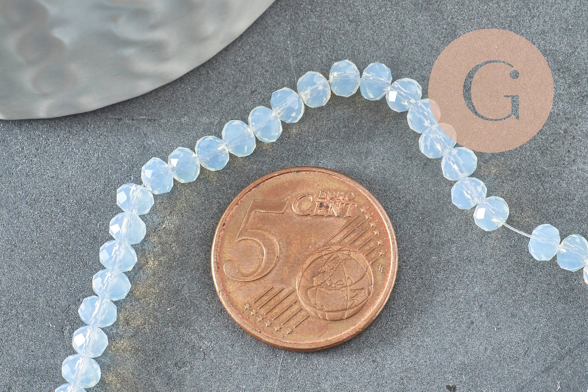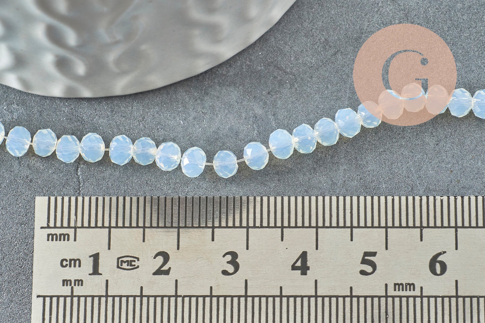Cuentas de ábaco de cristal facetado blanco opalescente de 4 mm, cuentas de vidrio para hacer joyas, tira de 41 cm, x1 (G8179)