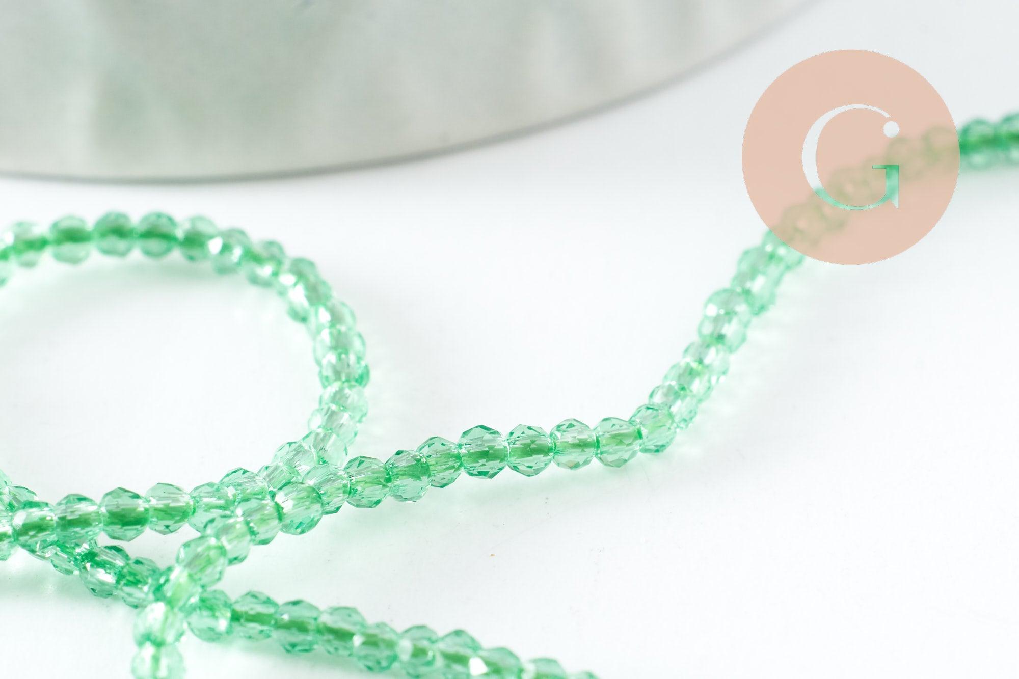Perla de vidrio facetada redonda transparente verde claro 2 mm, bricolaje, tira de 37 cm, x1 (G7445)
