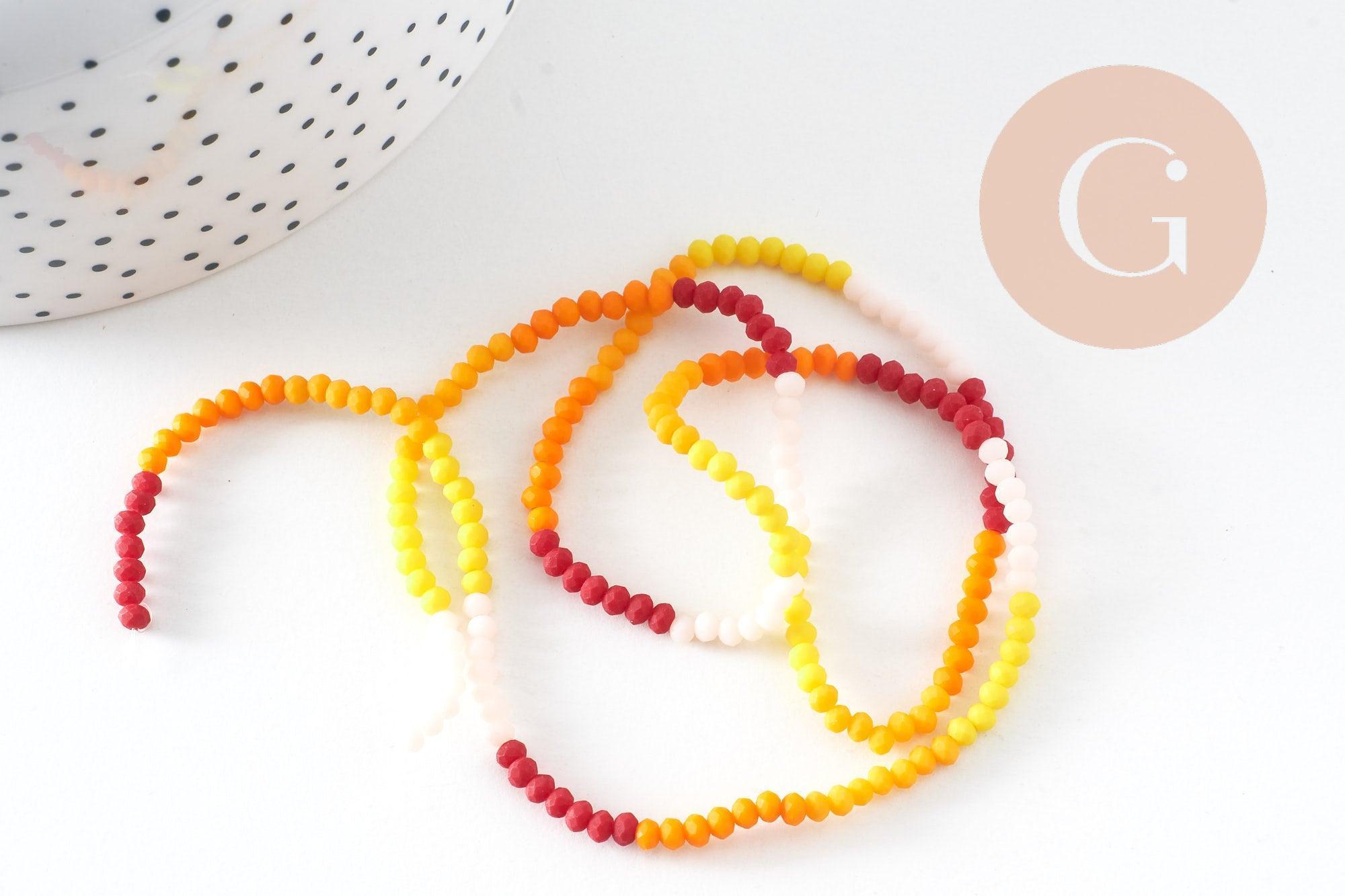 Perles abacus verre jaune orange camaïeu 3x2.5mm, perles cristal, fil de 42.5cm, x1 (G7828)