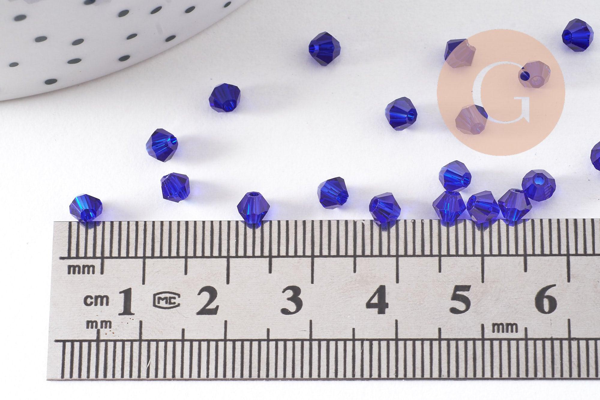 Añade un toque de elegancia y brillo a tus creaciones con estas cuentas bicono de cristal austriaco facetado de color azul real.