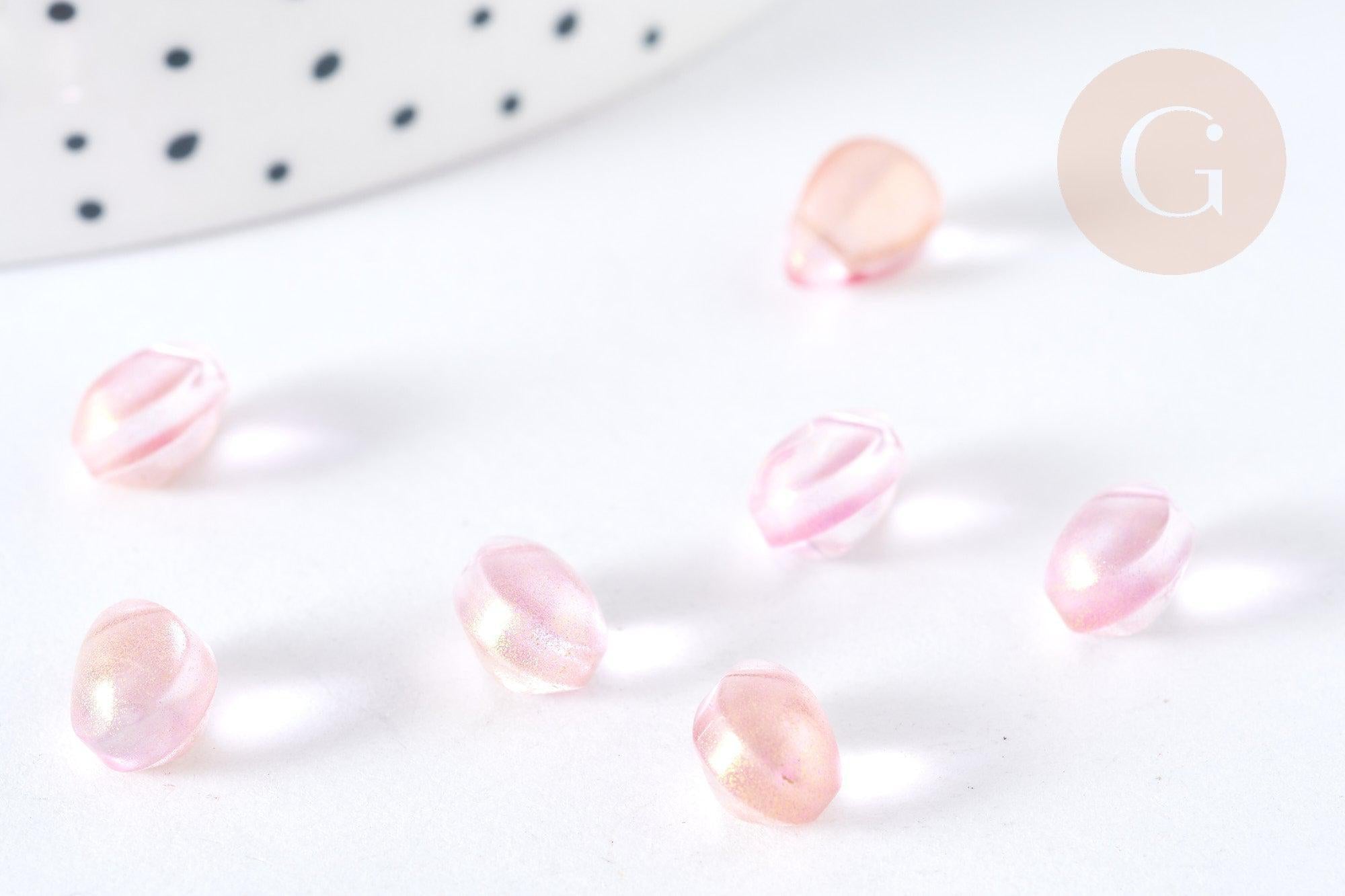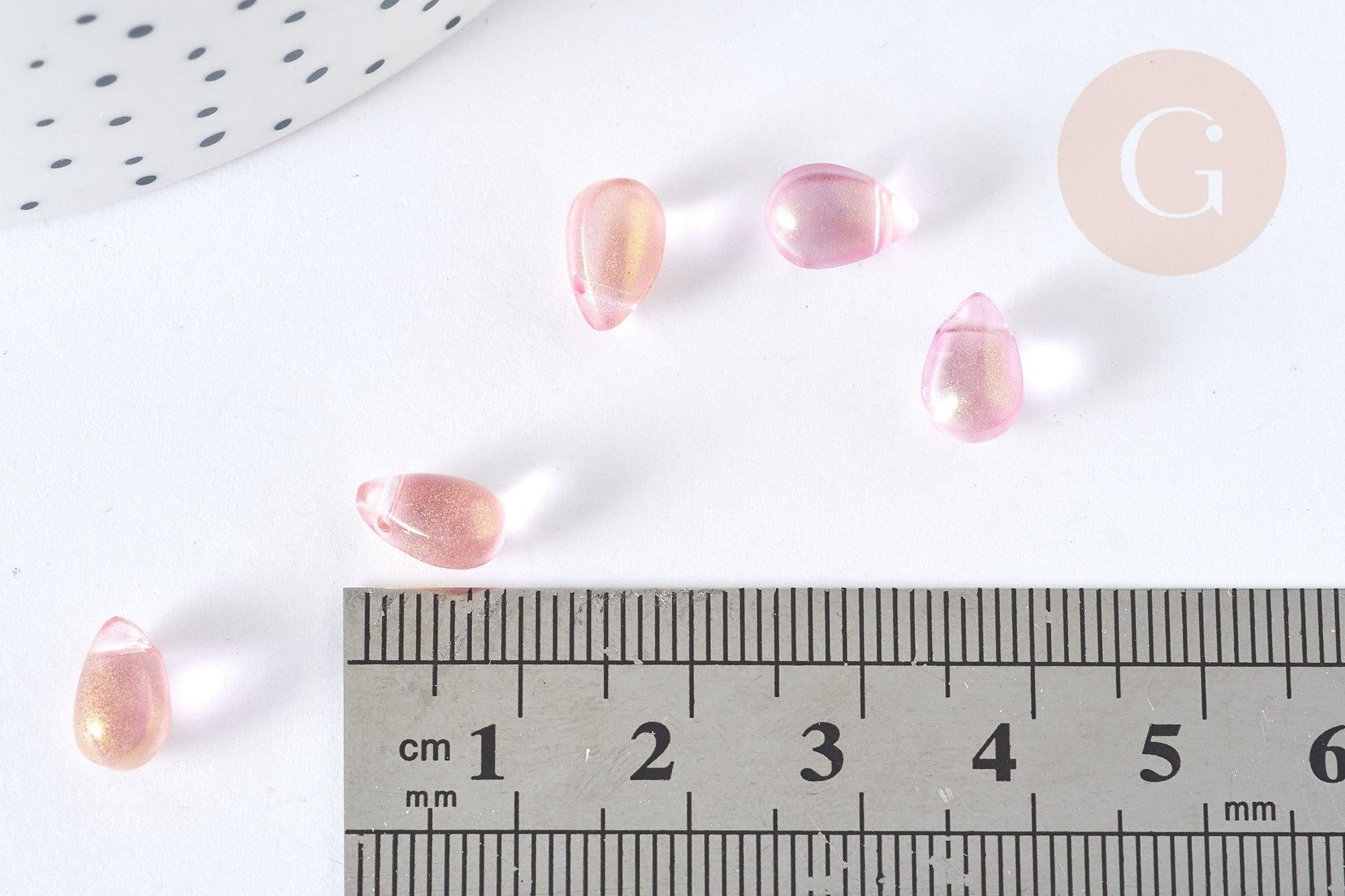 Perles cristal transparent goutte rose paillettes dorée 9mm, perles goutte, 9mm x50 (G7285)