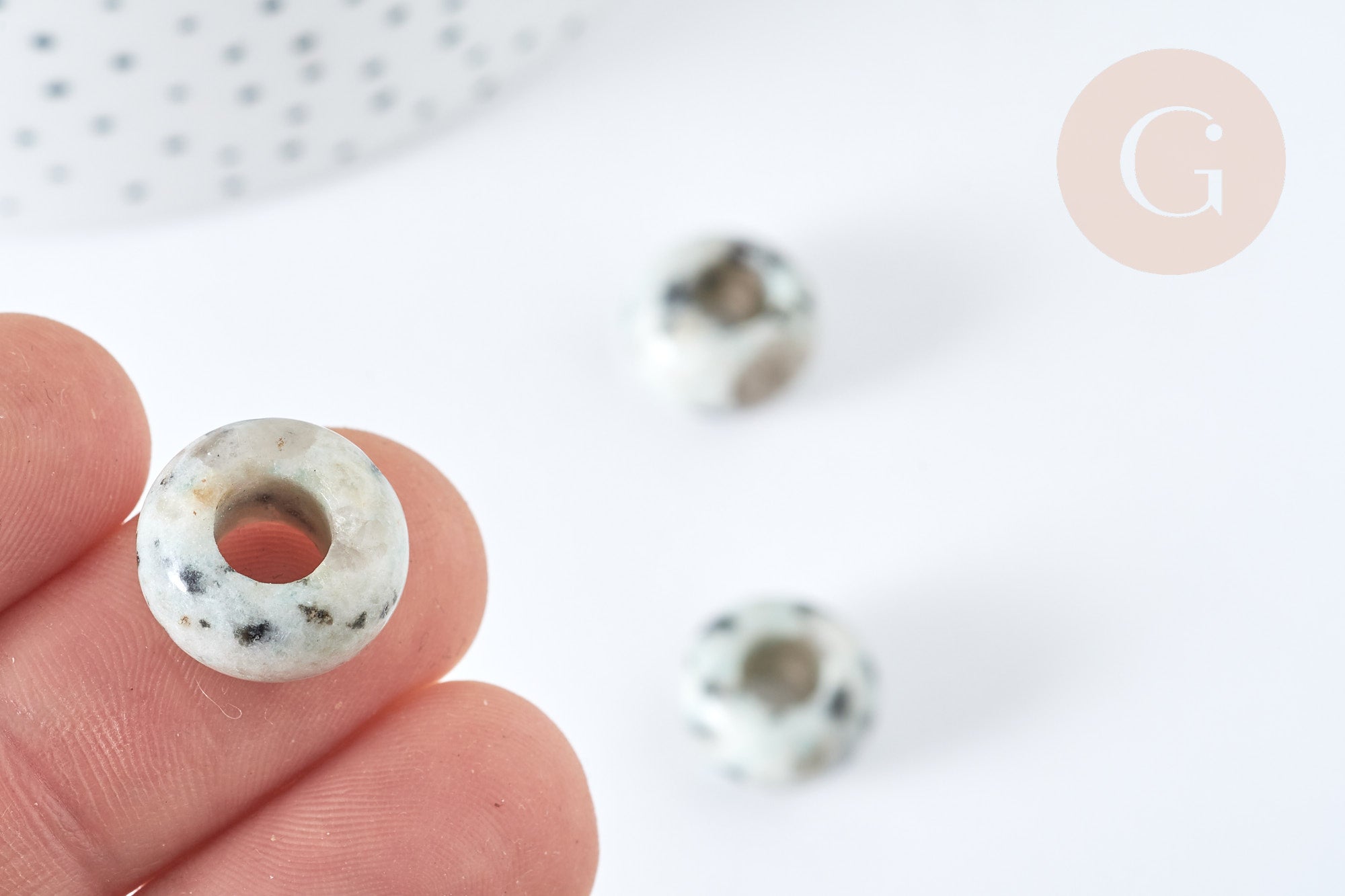 Pendentif donut perle rondelle jaspe sésame création bijoux 14mm, création bijoux pierre, x 2 (G7560)