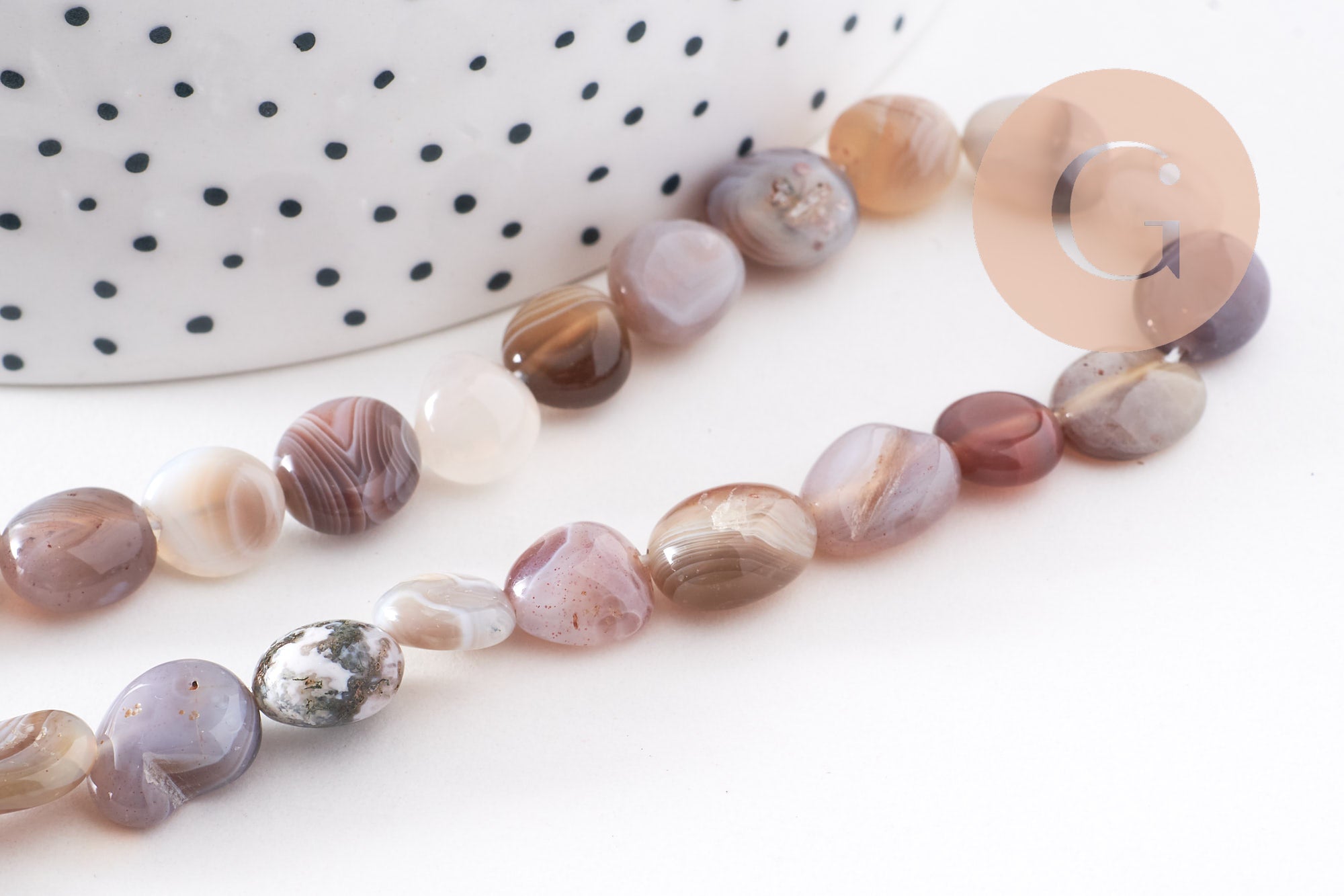 Otras cuentas de jade, ágata y piedra natural están disponibles en la tienda Gingerlily.
