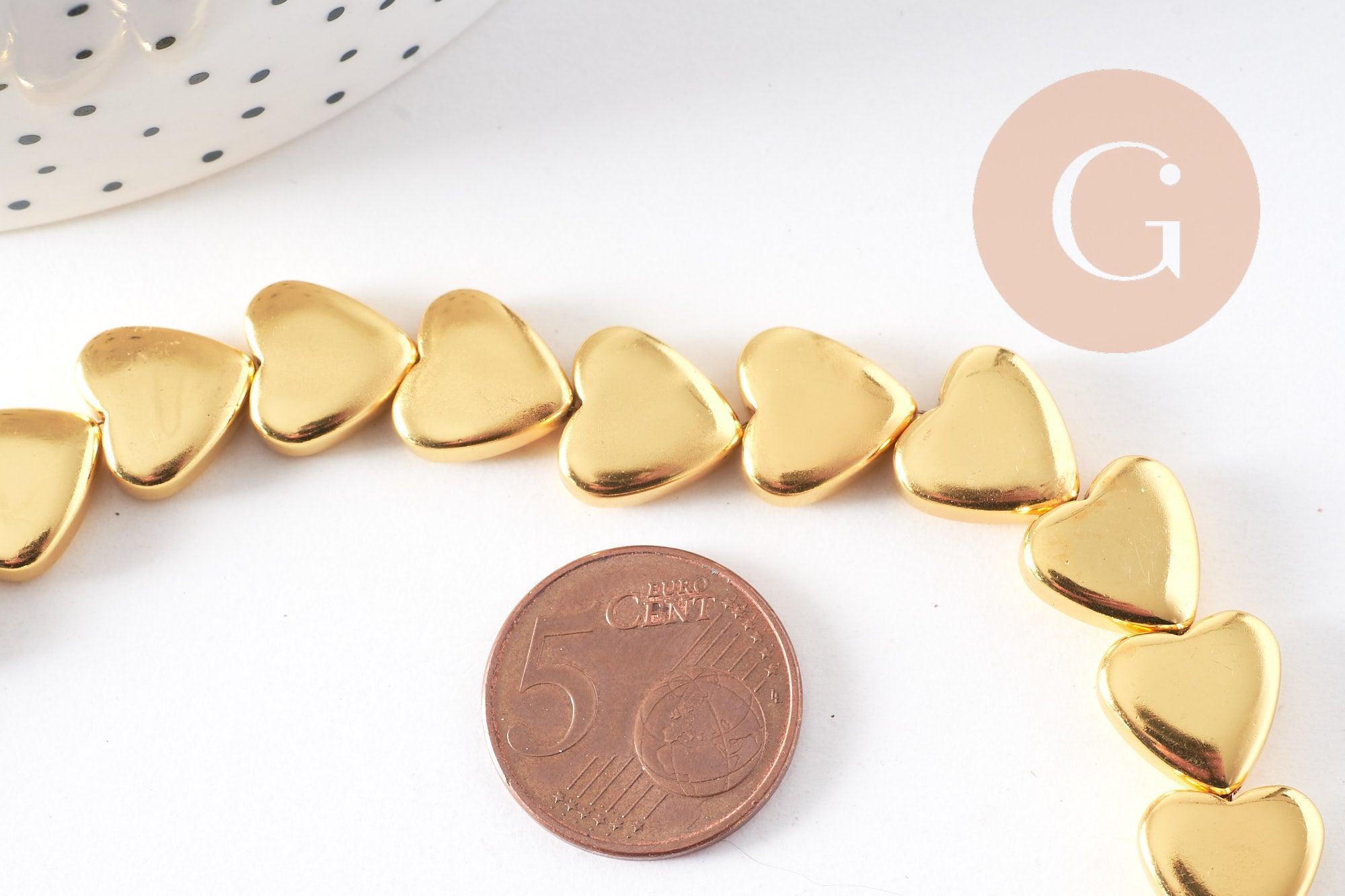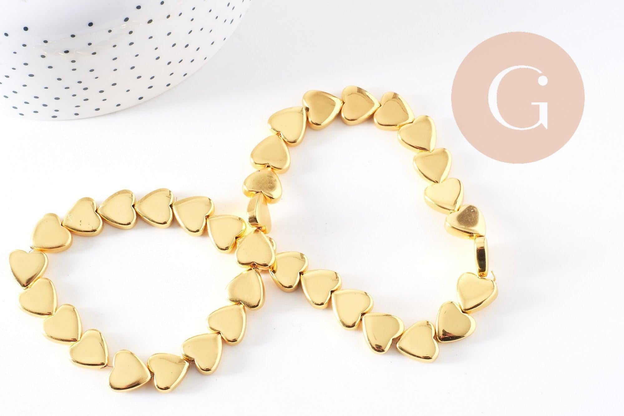 Aporta un toque romántico y refinado a tus creaciones con estas cuentas de hematita dorada en forma de corazón . Su acabado metálico brillante le da un brillo lujoso, ideal para joyería moderna y elegante .