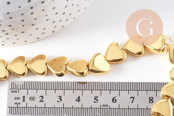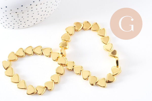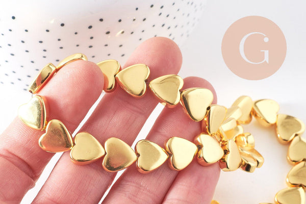 Perle coeur hématite doré 12x13mm, x1 fil de 38cm (G10284)