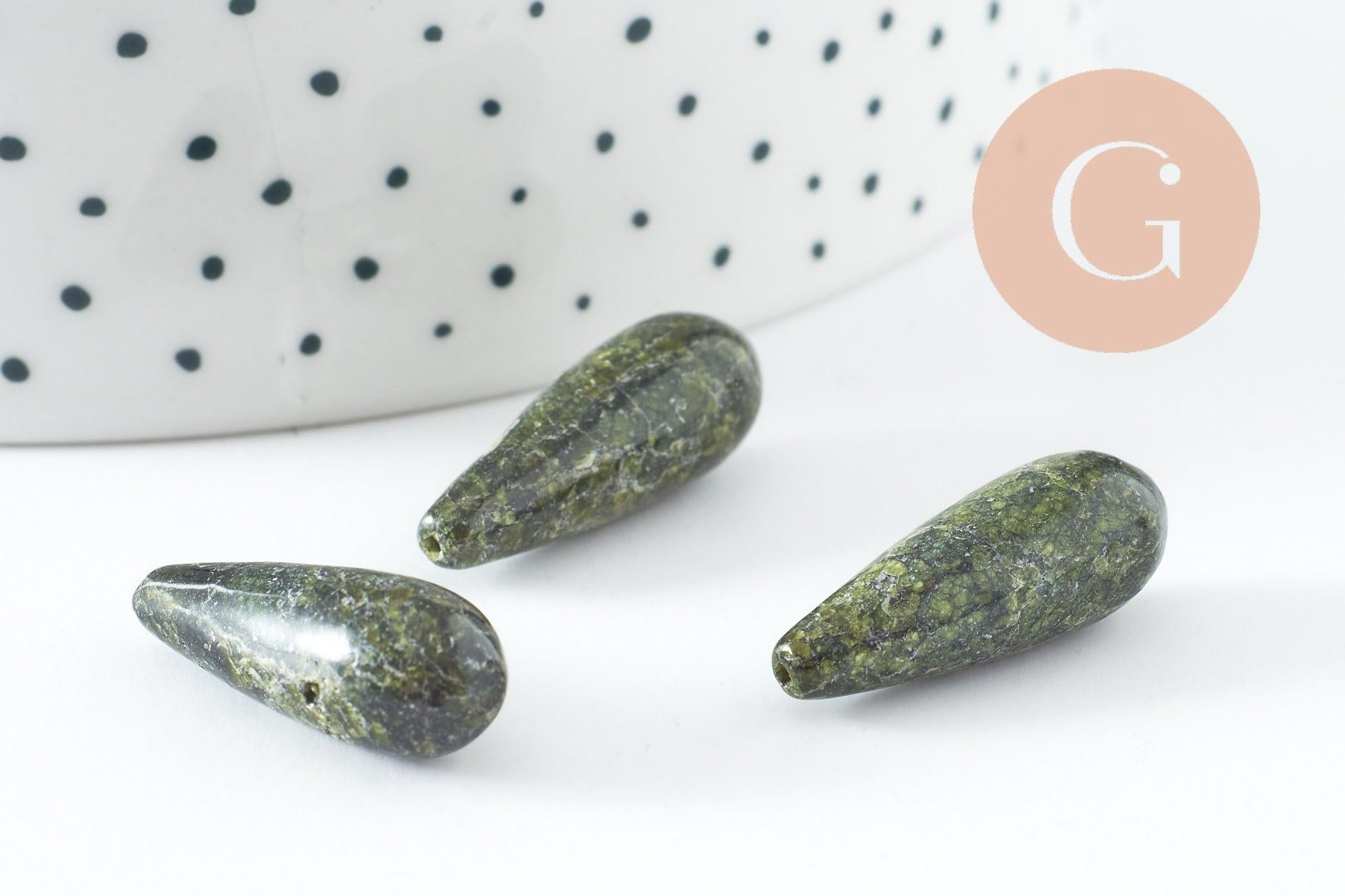 cuenta de gota semiperforada en jaspe de encaje verde natural, cuentas de piedra para crear joyas de piedra natural, 24-25 mm, juego de 5