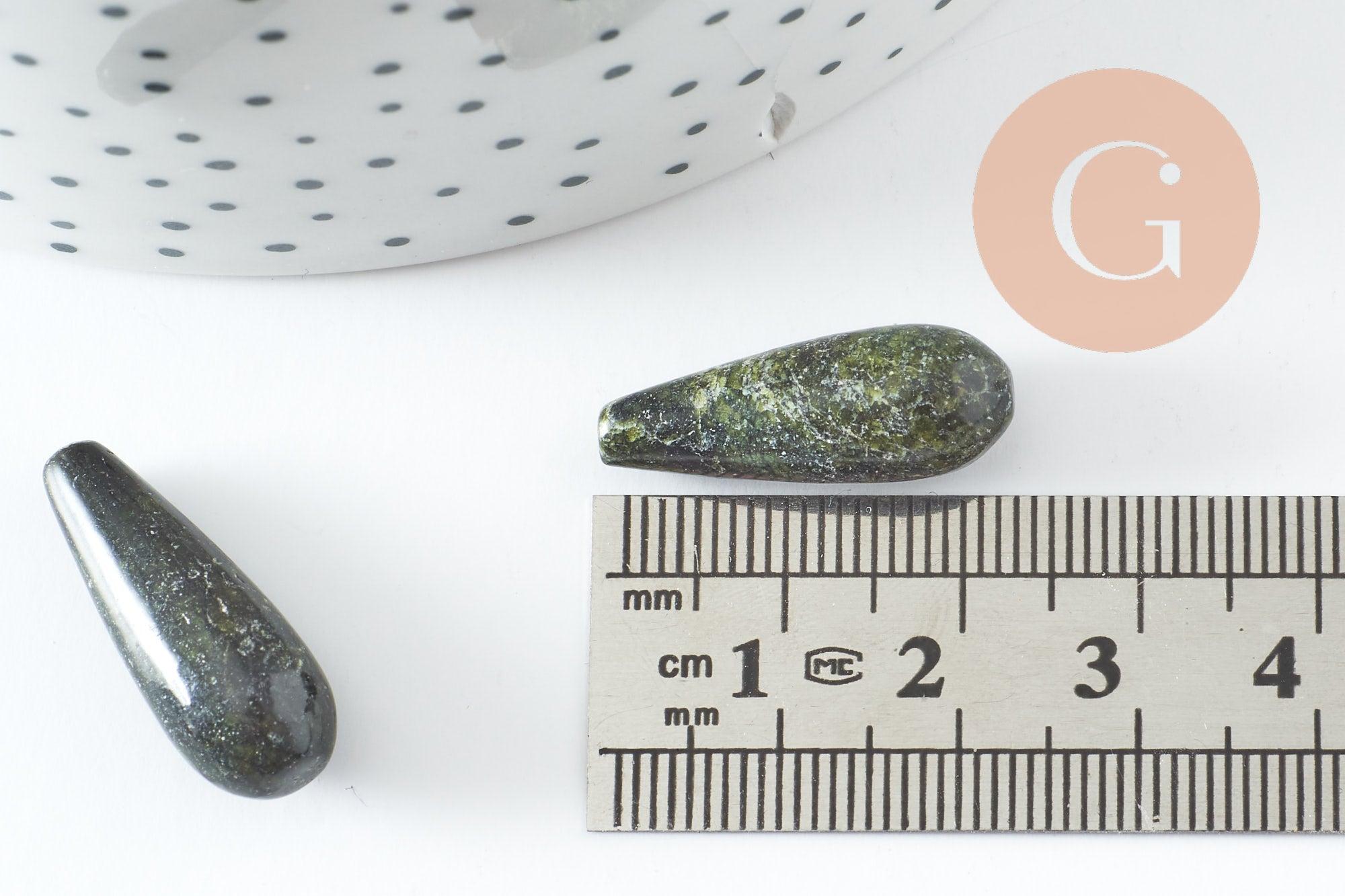 Cuenta de gota semiperforada en jaspe de encaje verde natural 24-25 mm, cuentas de piedra para crear joyas de piedra natural, X5 G5156