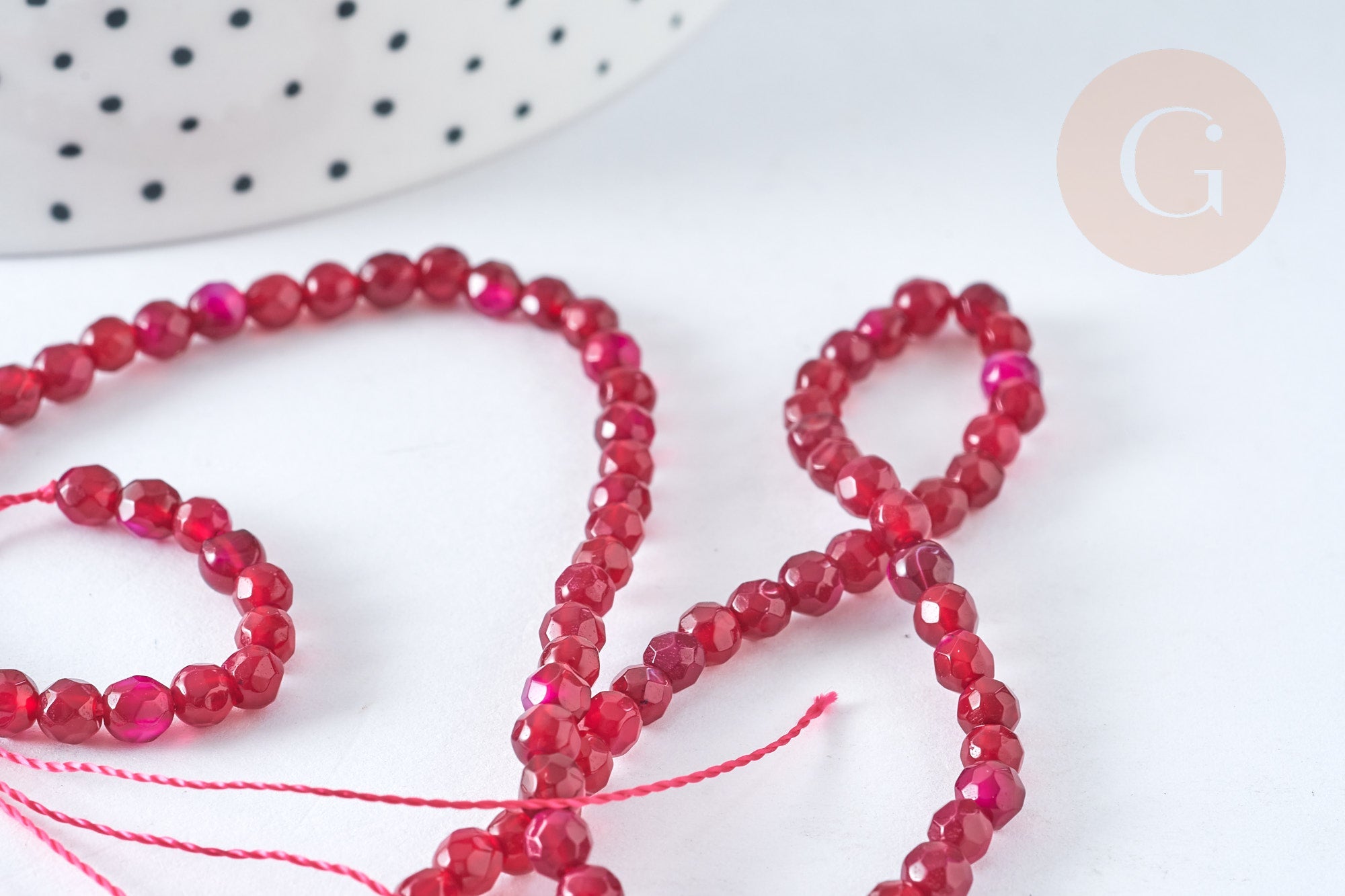 Cuentas redondas facetadas de ágata natural rojo magenta 4 mm, piedra natural, hilo de 35 cm, x1, G7344)