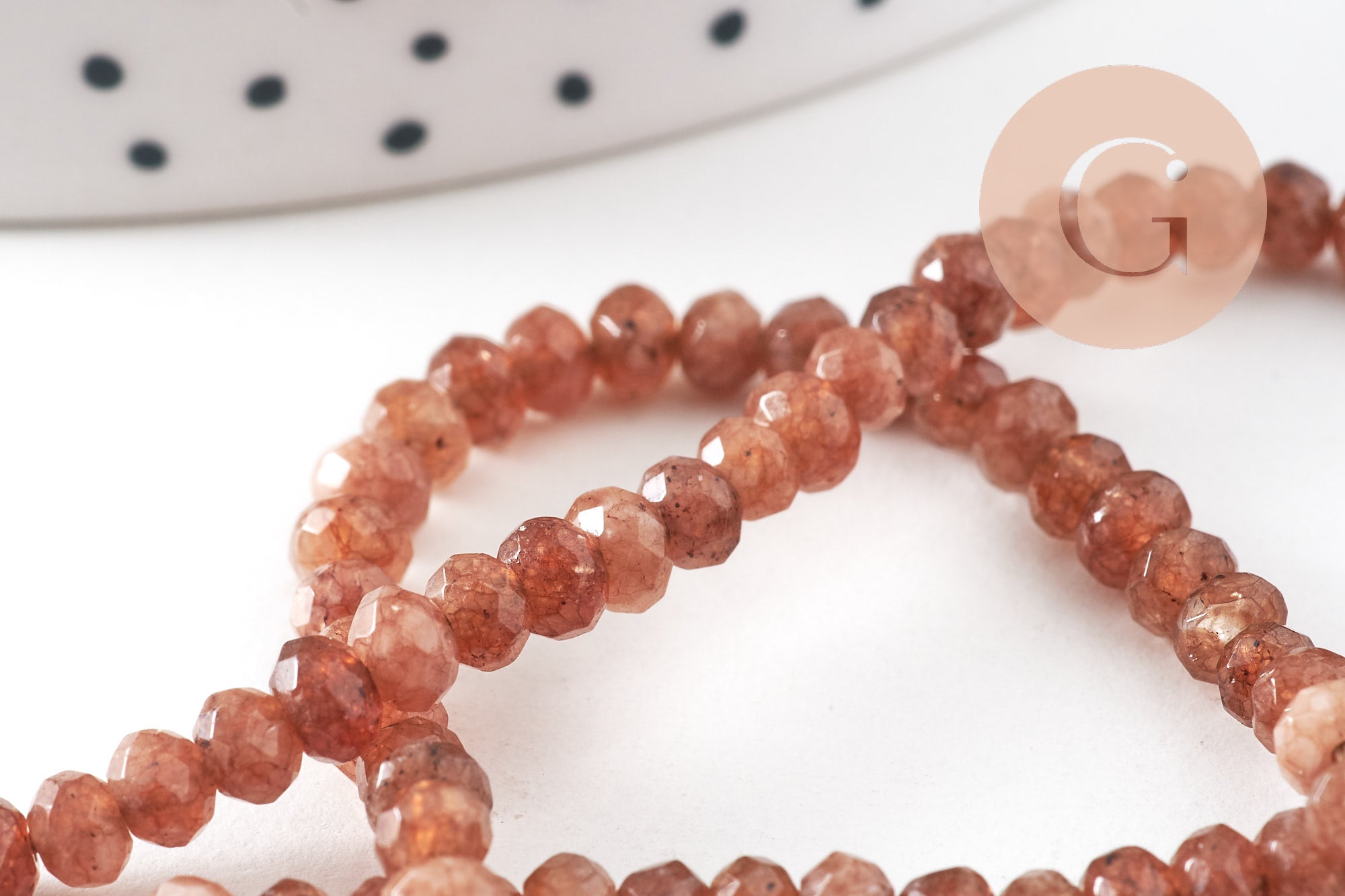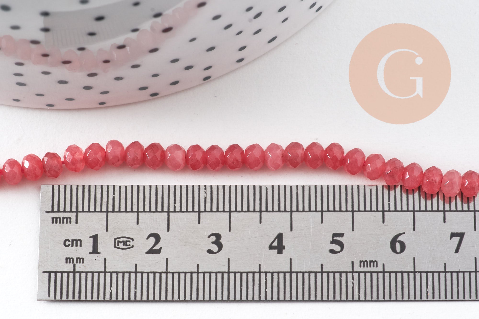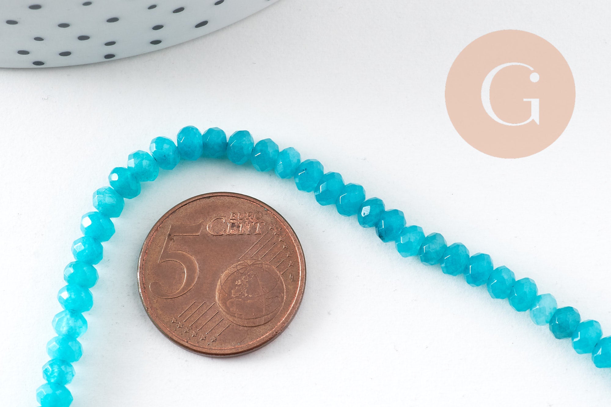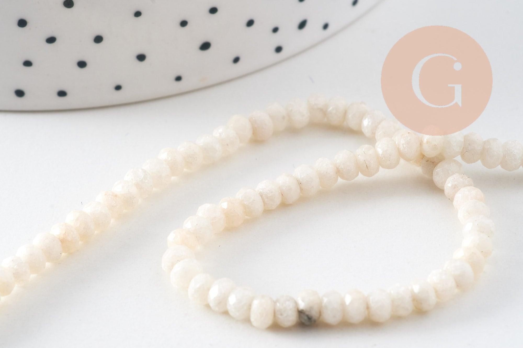 Realza tus creaciones de joyería con estas cuentas facetadas en forma de rondel de jade natural teñido , disponibles en una magnífica gama de colores: negro, rosa, verde amarillento, turquesa, morado, azul, gris beige, marfil o multicolor.