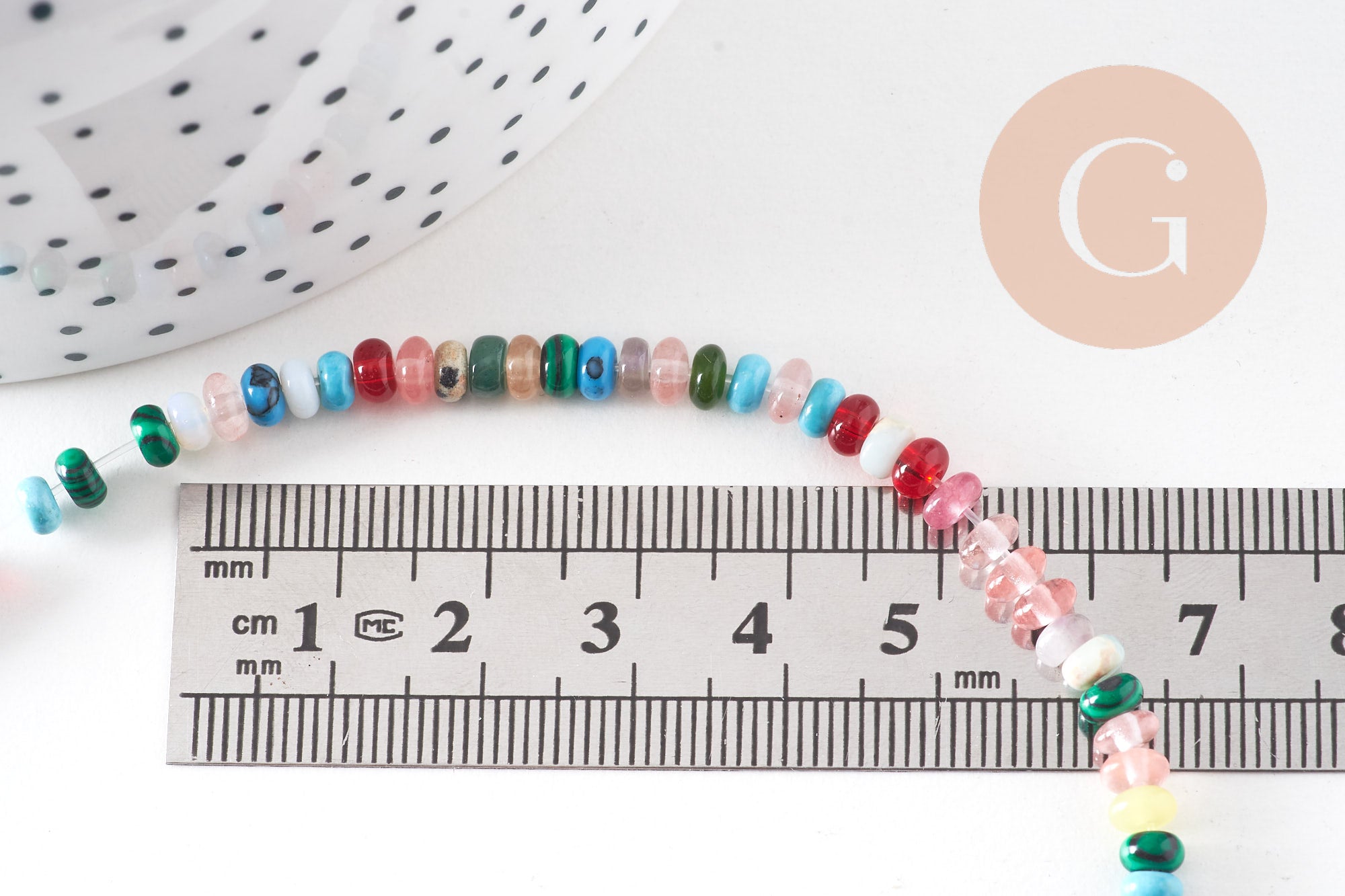 Perle rondelle pierres naturelles mélangées 4mm, x1 fil de 39cm (G10818)
