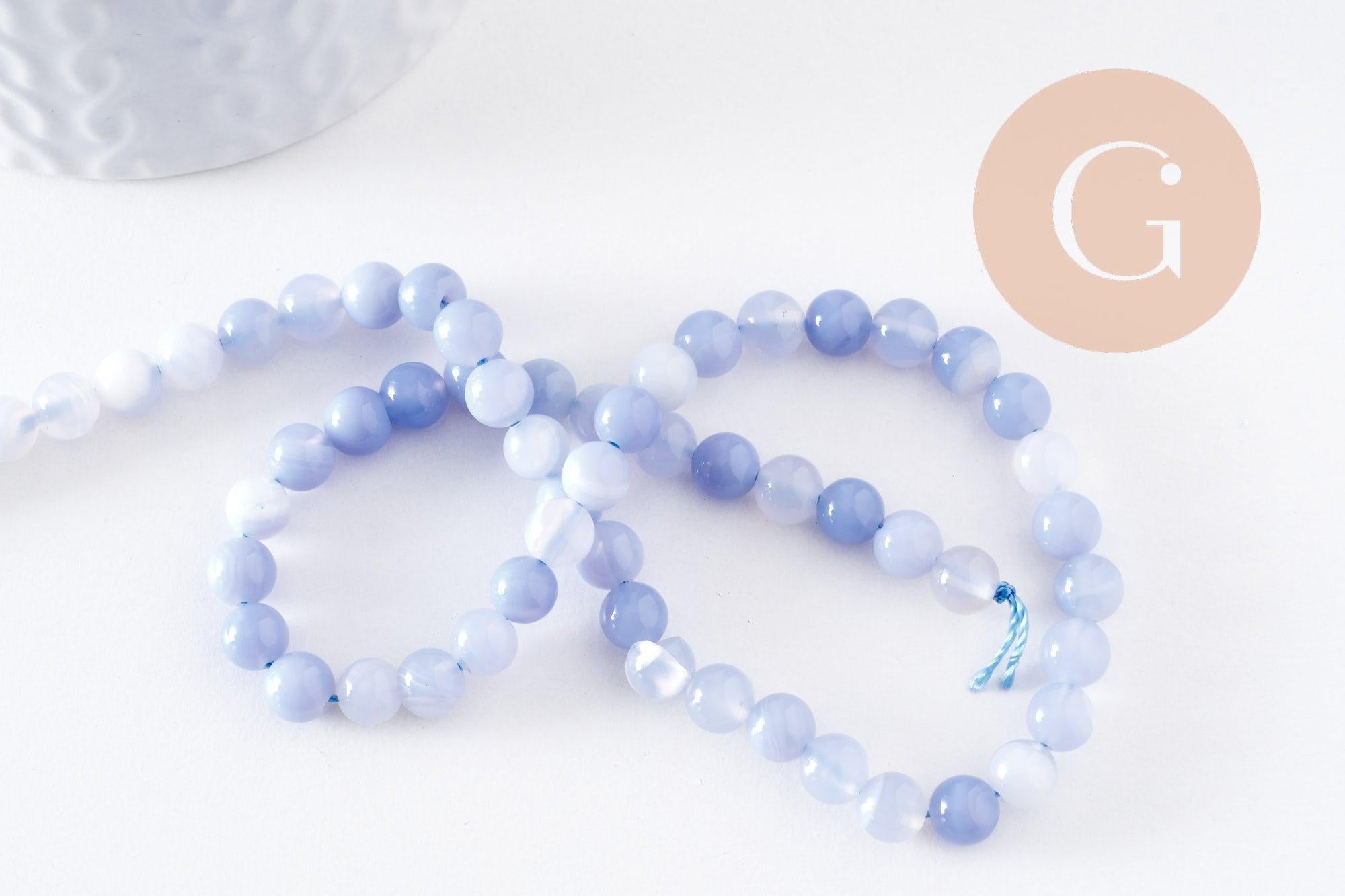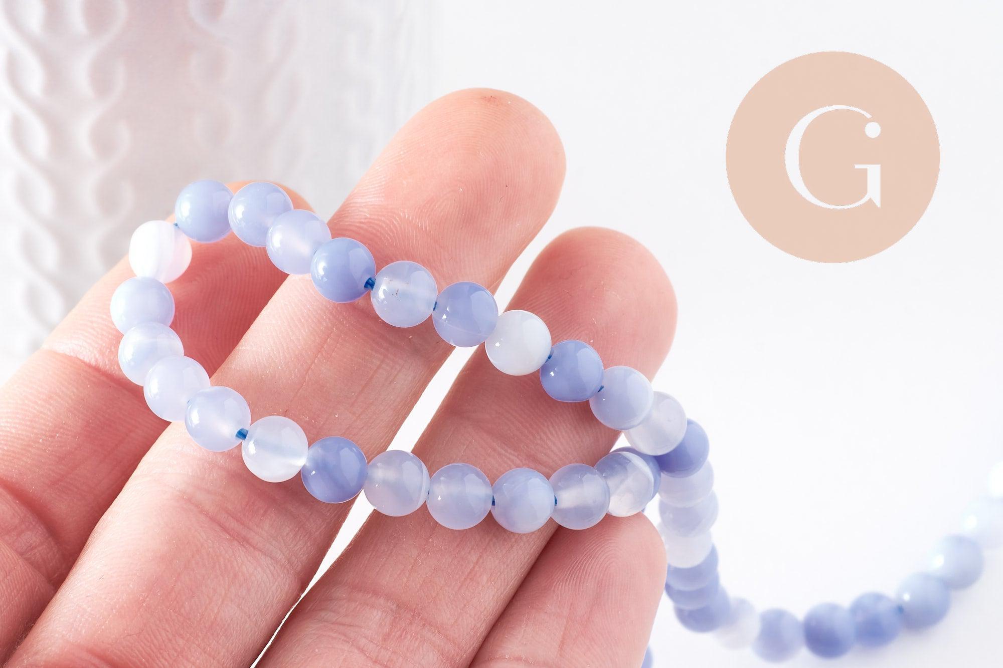 Cuentas de calcedonia azul, suministros creativos, calcedonia, piedra natural, creación de joyas, cuentas de piedra, cuarzo natural, 6 mm, hilo de 38 cm