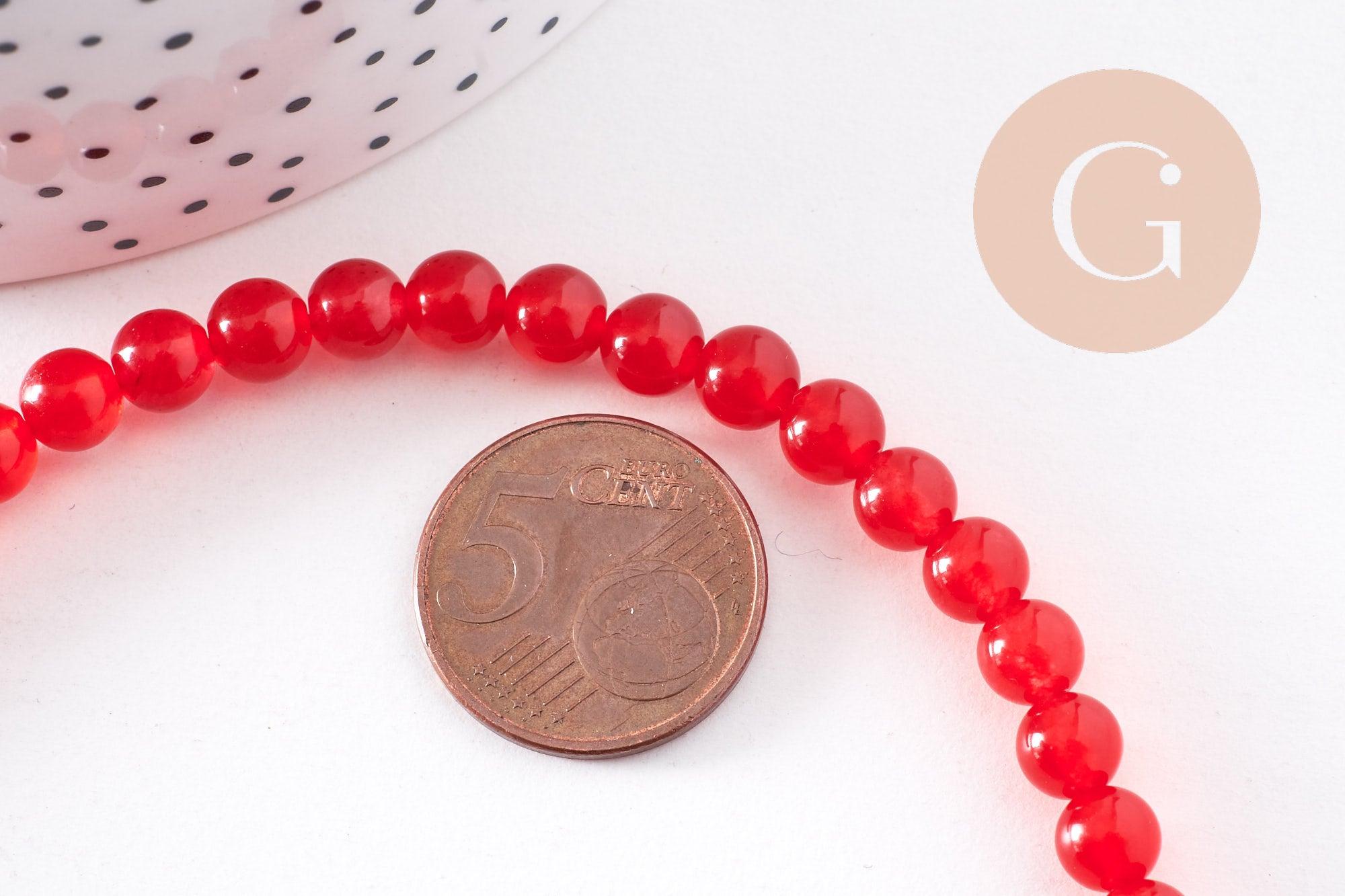 Cuentas de jade rojo, suministros creativos, cuentas redondas, jade rojo, piedra natural, 6 mm, tira de 40 cm, x1 (G1783)