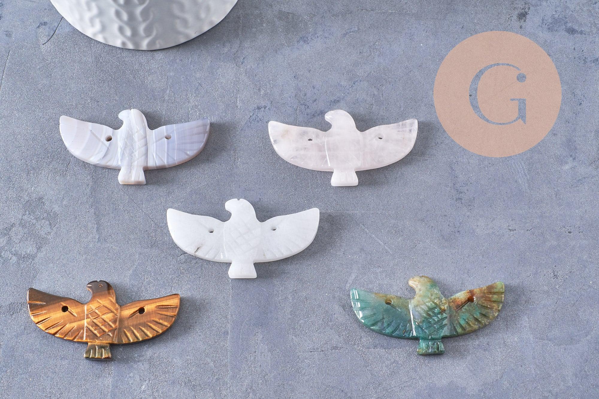 Añade fuerza y personalidad a tus creaciones con esta cuenta de águila esculpida , símbolo de fuerza y libertad. Tallada en piedra natural , cada pieza es única en sus matices y detalles. Con 40 mm , se convierte en la pieza central perfecta para crear joyas DIY impactantes e inspiradoras .