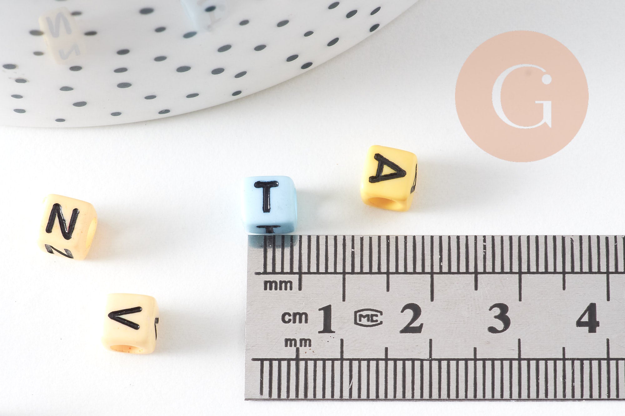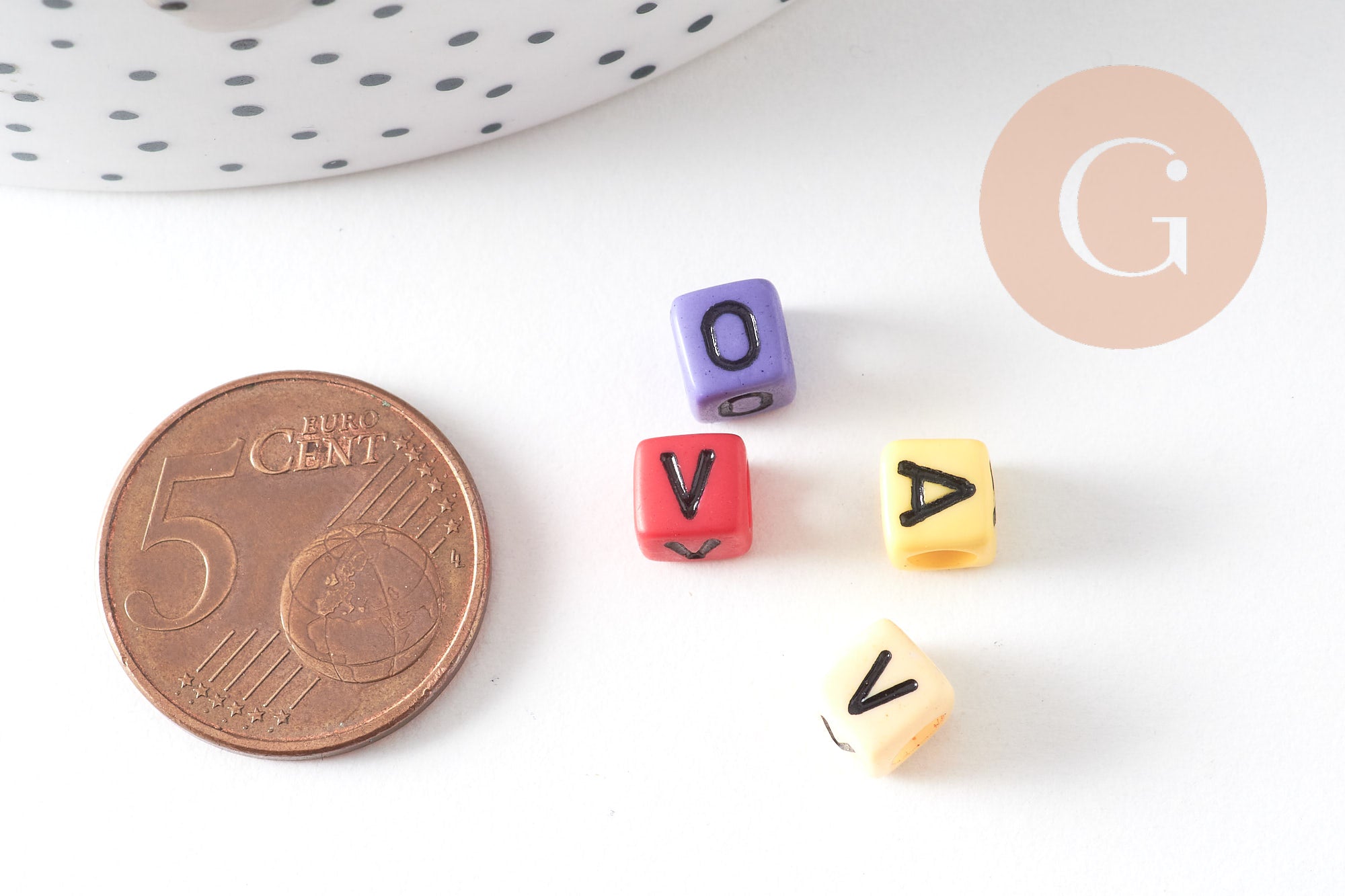 Perle carré Lettre Alphabet plastique multicolore,perle plastique, création bracelet mots,6mm, x 10gr (G1787)