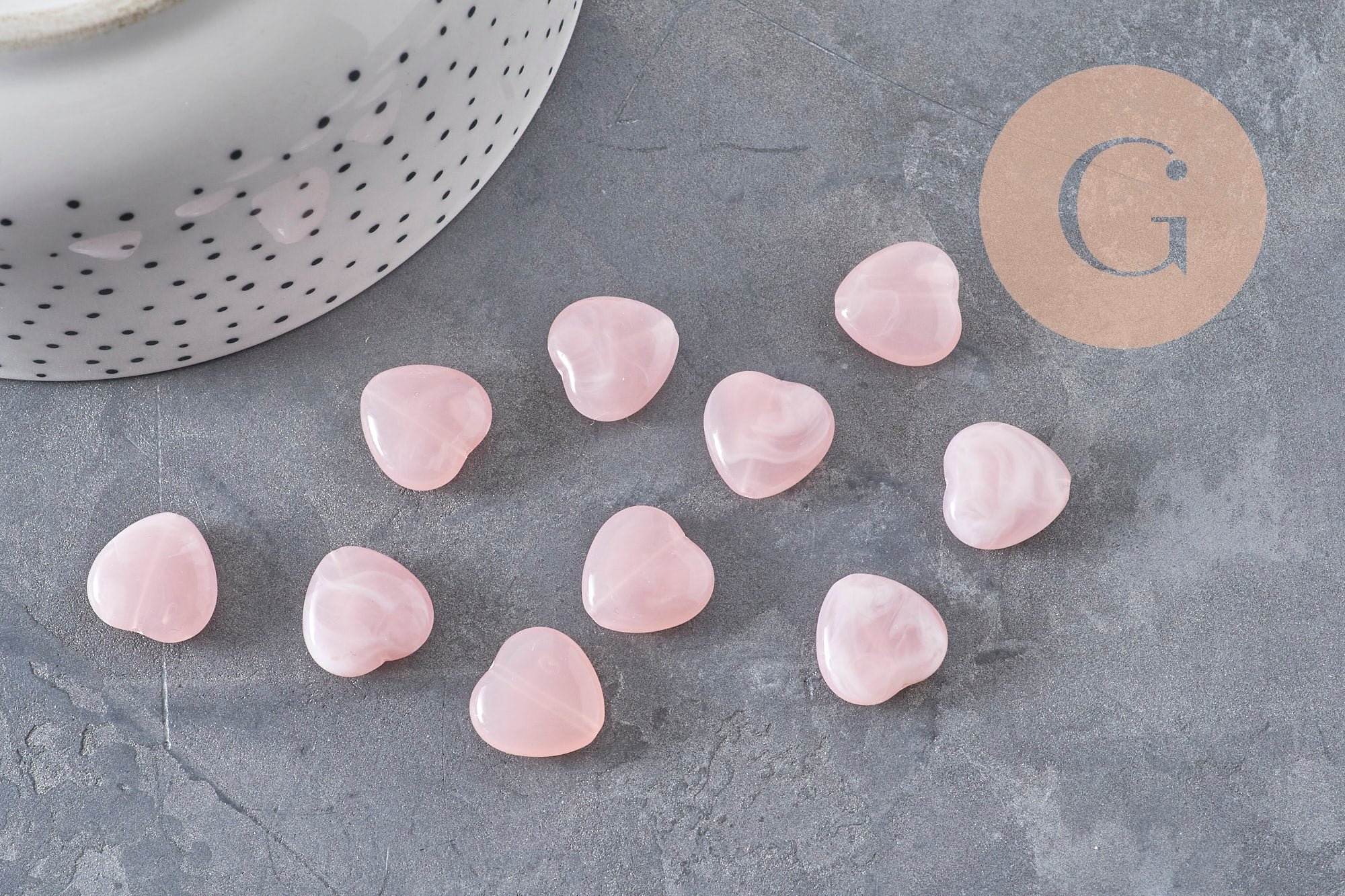 Perles cœur en acrylique imitation pierre rose, idéales pour des bijoux DIY légers et romantiques.