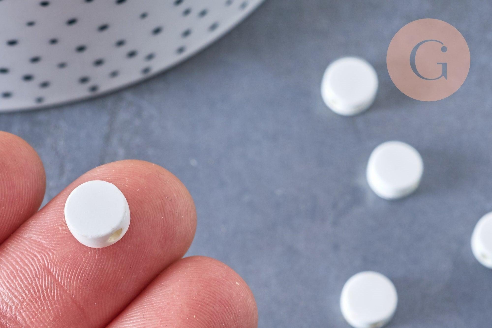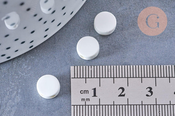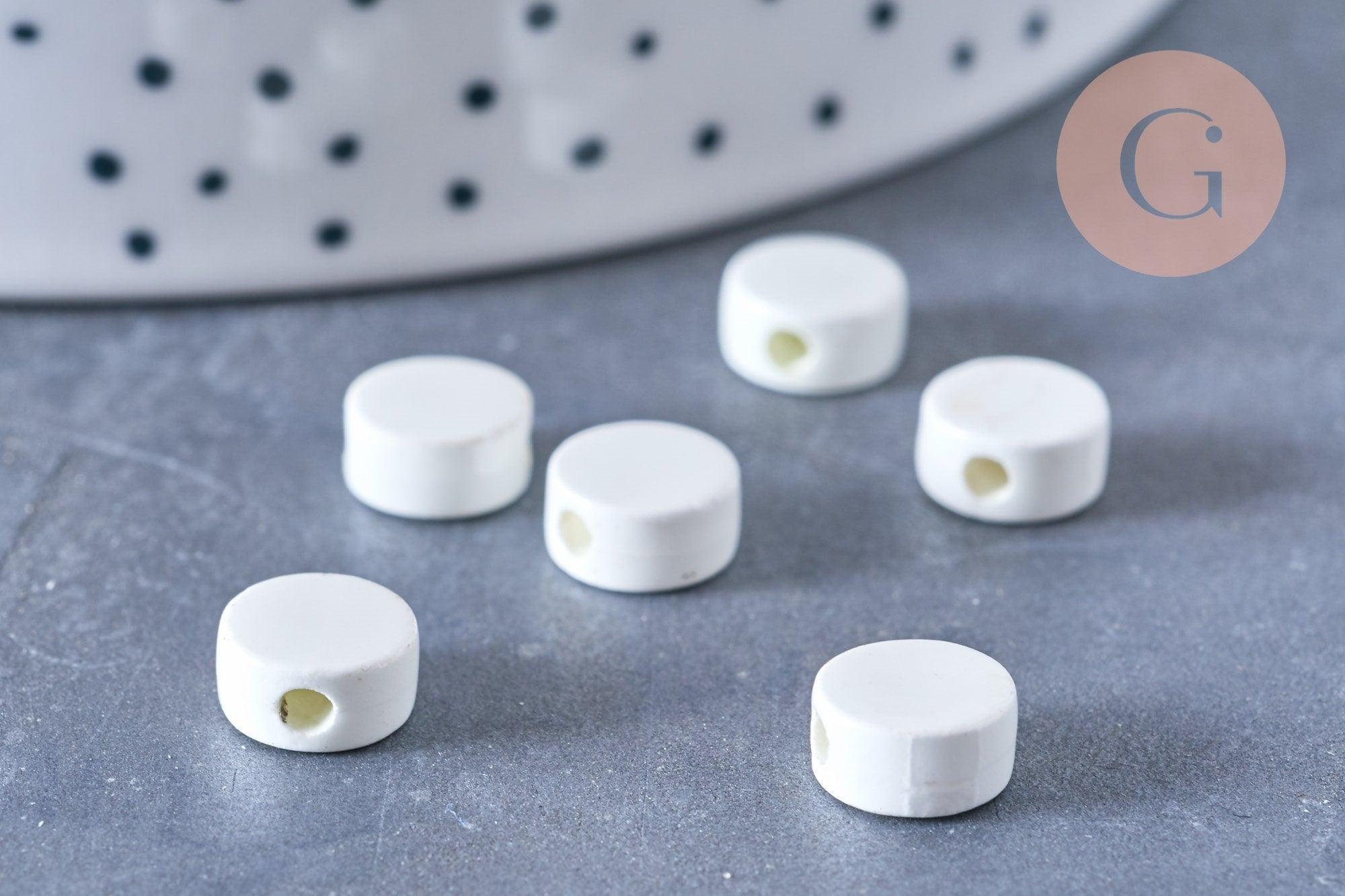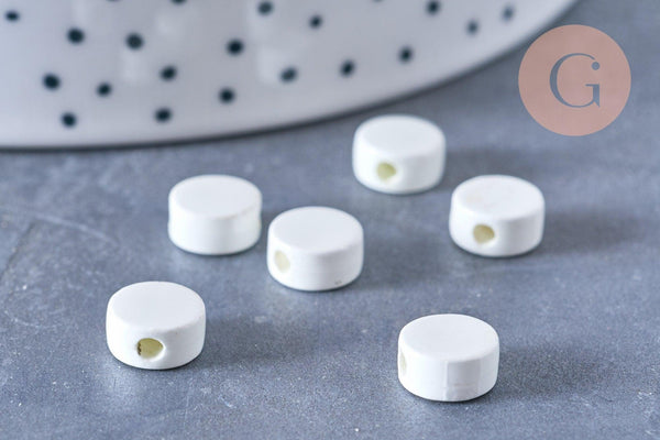 Perles disque céramique blanche 8mm, x10 (G3497)